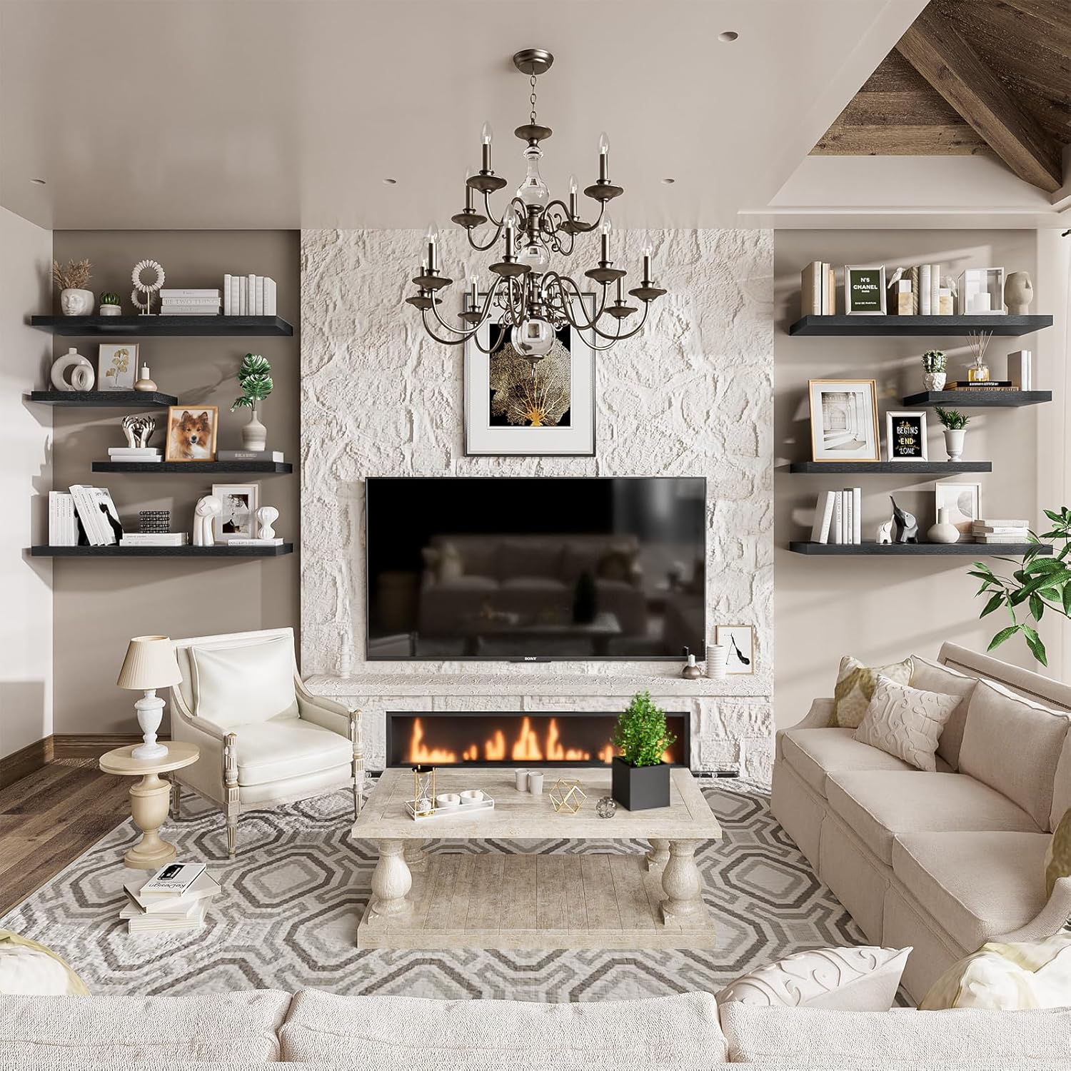 - Extra Deep Floating Shelves: Measuring 11.6” D x 35.4” W x 1.5” H, these shelves are crafted for maximum depth and durability. The spacious 12” depth gives you plenty of room for stylish display, organized storage, and decorative accents. Perfectly suited for your bathroom, kitchen, or living room, they enhance both function and flair in any space!