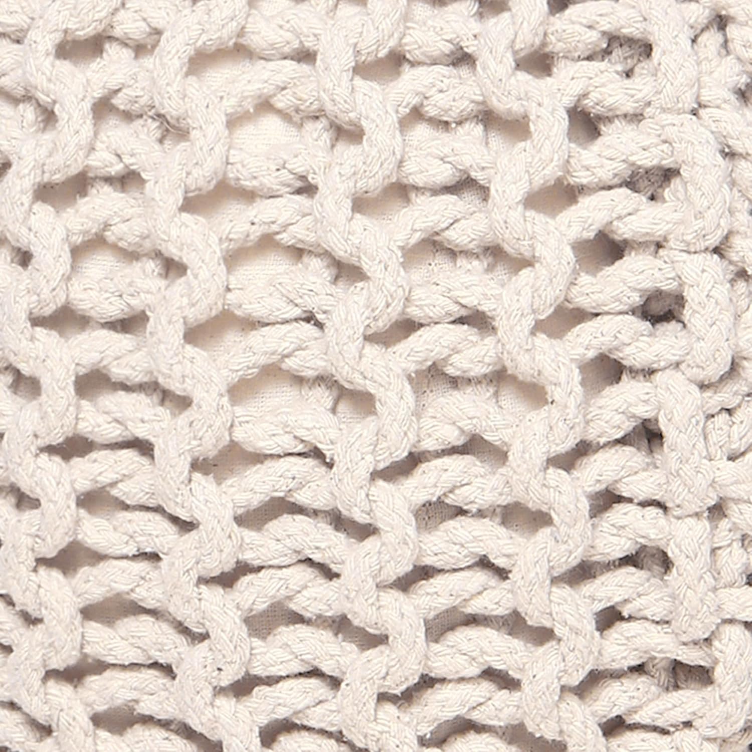 REDEARTH Round Pouf Ottoman –18"x18"x14" Hand-Knitted Cotton Pouffe –Cable Footstool –Boho Dori Hassock –Pre-Stuffed Poof – Extra Seat -Poofy Footrest for Living Room, Bedroom, Nursery, Nook –Ivory