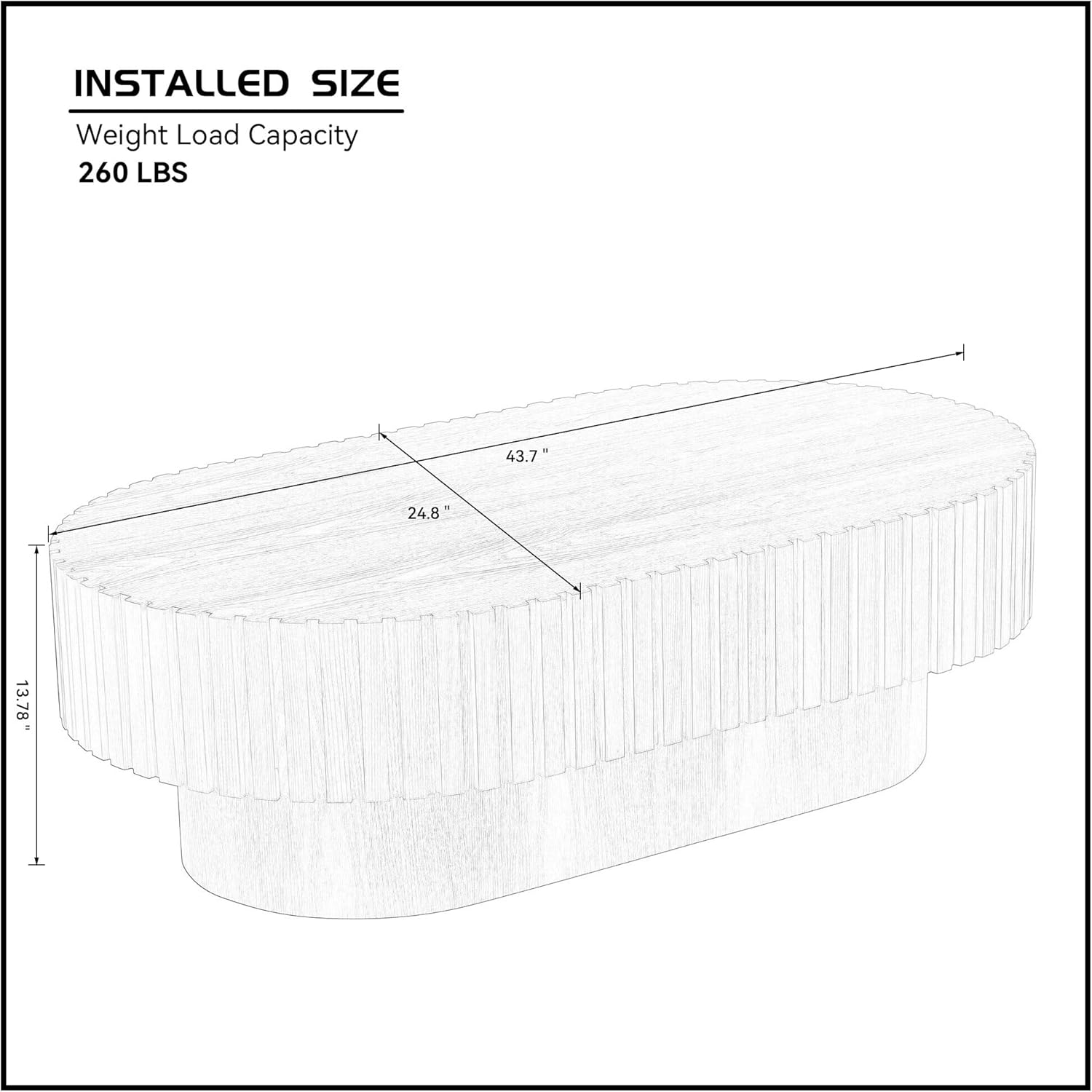 43.7" Oval Coffee Table for Living Room,Modern Handcraft Drum Coffee TableSmall Wooden Coffee Table with Sturdy Pedestal Easy Assembly for Office-Walnut