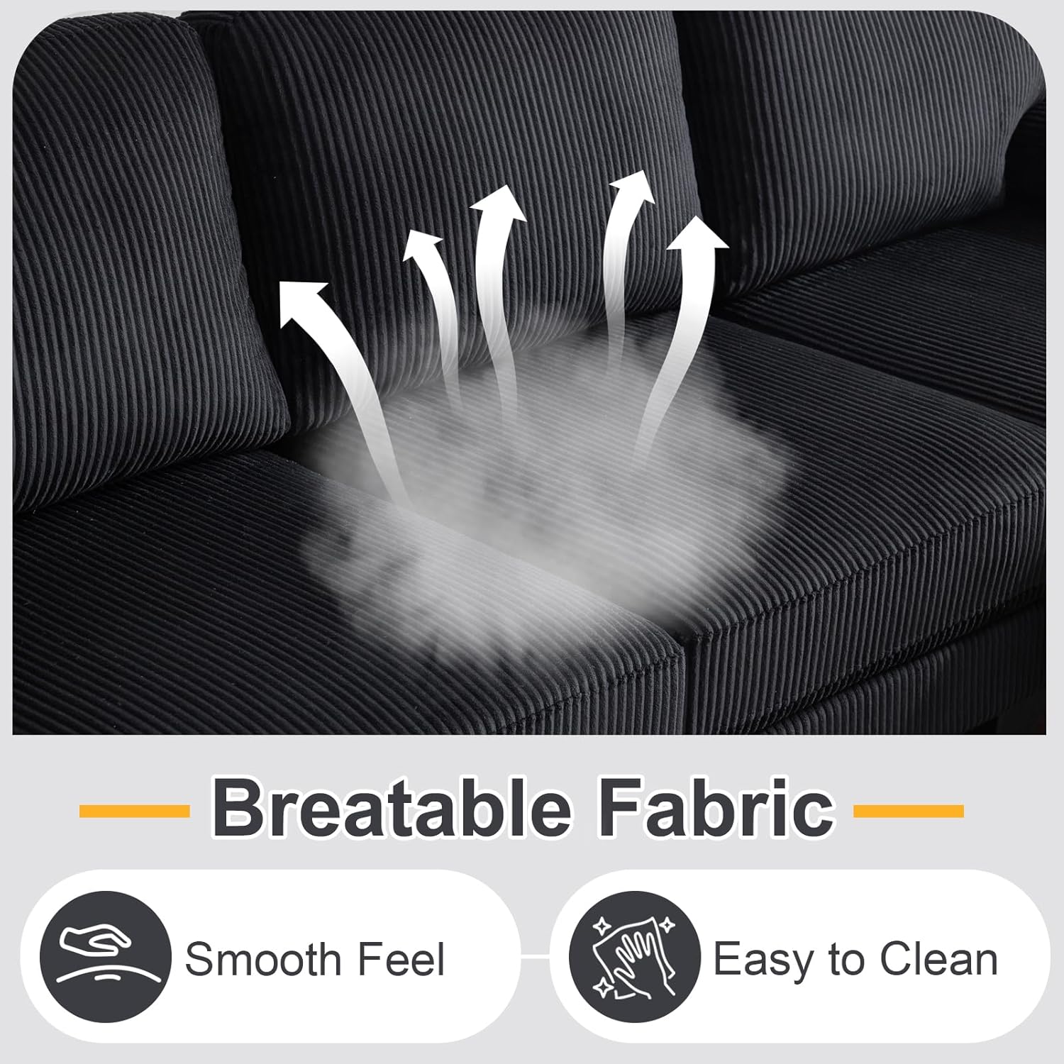 - SOFT & COMFORTABLE - When seated on the couch, you will experience the support of the high-resilience sponge in the seat and back. Occasionally, you can take a nap on the chaise. Covered with breathable fabric, this four-seat sofa offers physical and mental comfort.