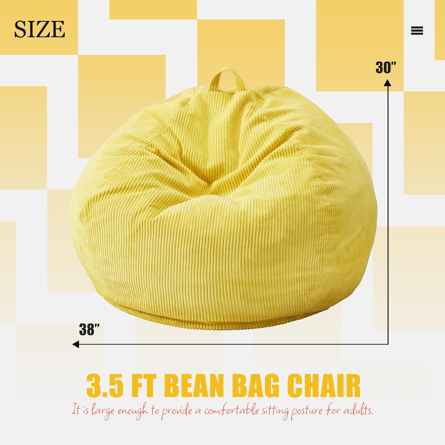 Hobestluk 3.5FT Bean Bag Chair Adult Bean Bag Chair Large Bean Bag Chair with Filler Included Teardrop Bean Bag with Removable Cover for Bedroom Living Room - (Large, Yellow)