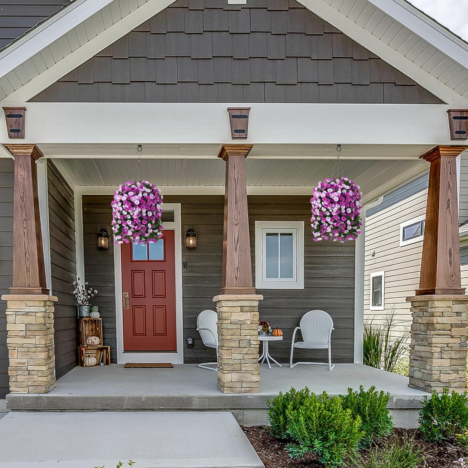 - GOOD QUALITY: The hanging basket and artificial flowers were made of good quality material that donโt require maintenance after assembly. Itโs UV resistance and wonโt fade, sturdy enough for any weather. No watering needs.