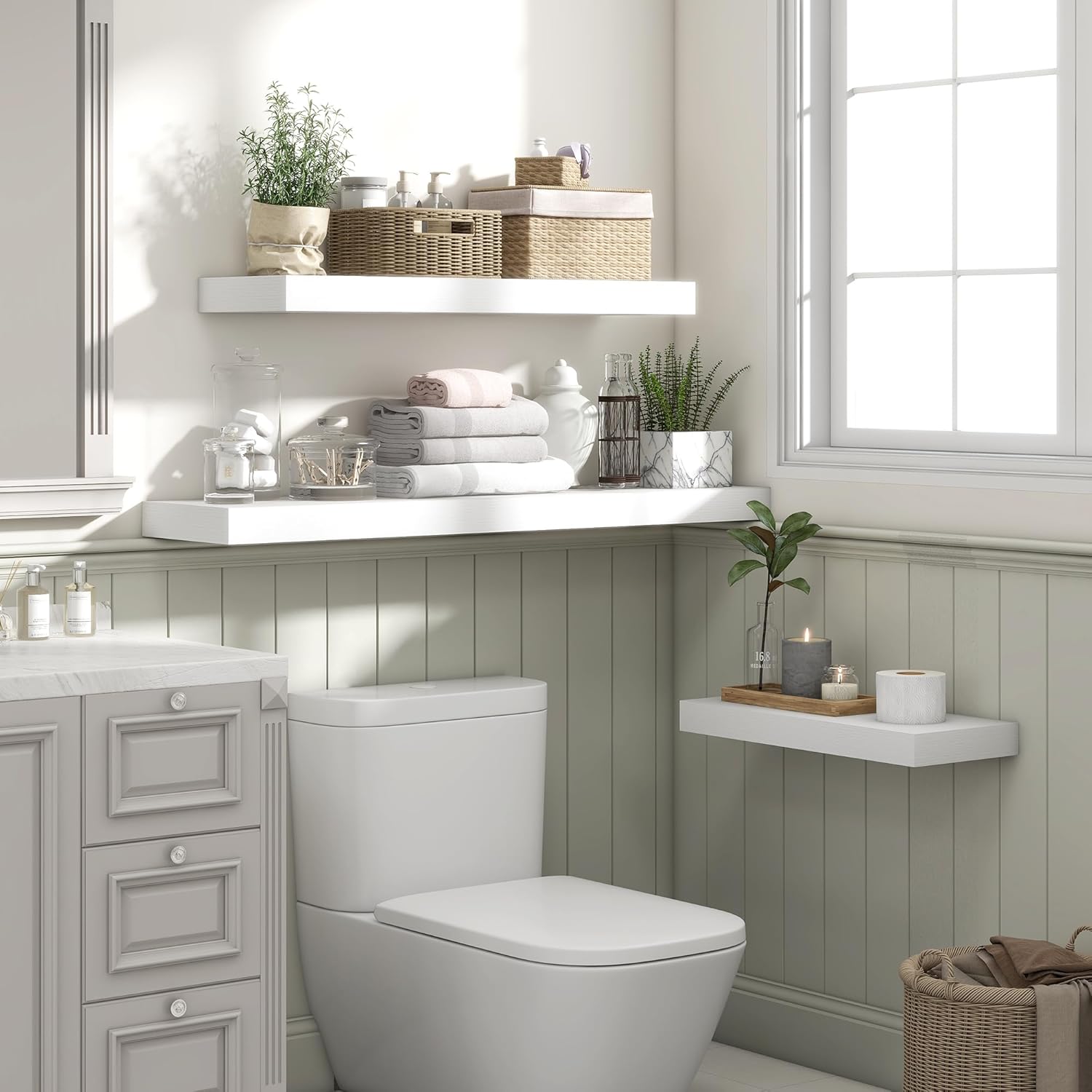 - 【Easy to install and clean】Our white wall floating shelves come with detailed installation instructions and can be installed quickly in 5 minutes-users can easily complete the installation without professional skills. The white floating shelf has a smooth surface, is durable, and is easy to clean. Just wipe it gently with a damp cloth to keep it clean.