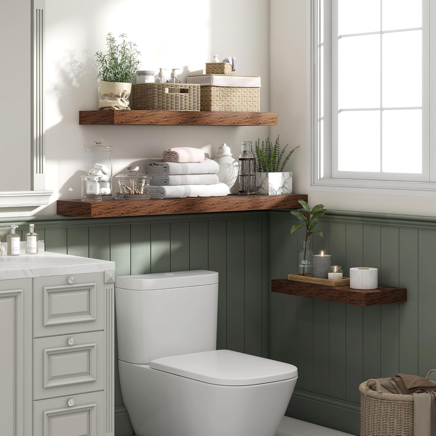 - 【Versatile】Our floating shelves are available in multiple different colors, so our invisible wall-mounted floating shelves are suitable for a variety of home environments, including bathrooms, living rooms, bedrooms, study rooms, and kitchens. It can be used as a storage space for small items and decorations in the bedroom, adding a touch of simplicity and warmth to the space.