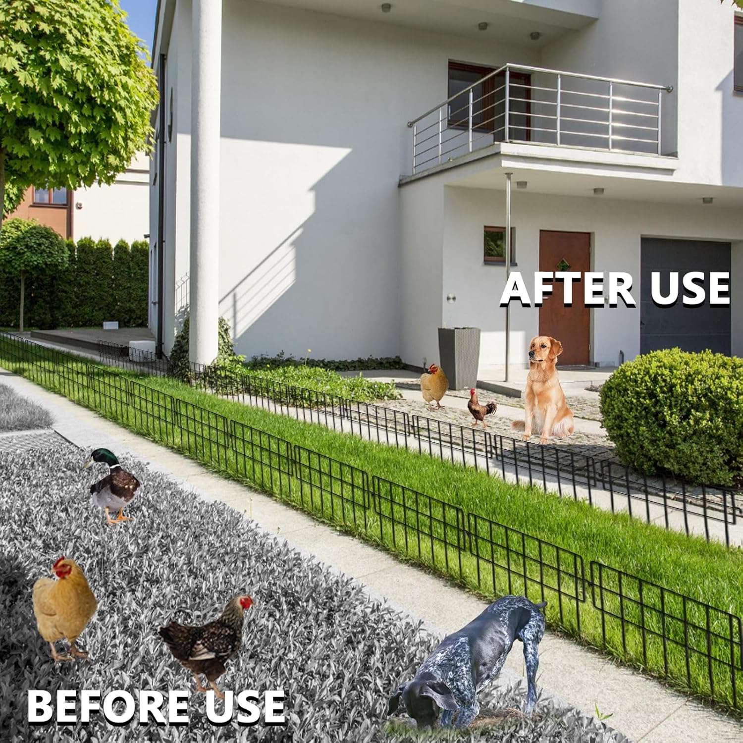- Outdoor Dog Fence & Border: This dog fence serves as a garden fence animal barrier, ideal for yards. It enhances aesthetics while protecting plants from pets and small animals with a decorative garden fence design