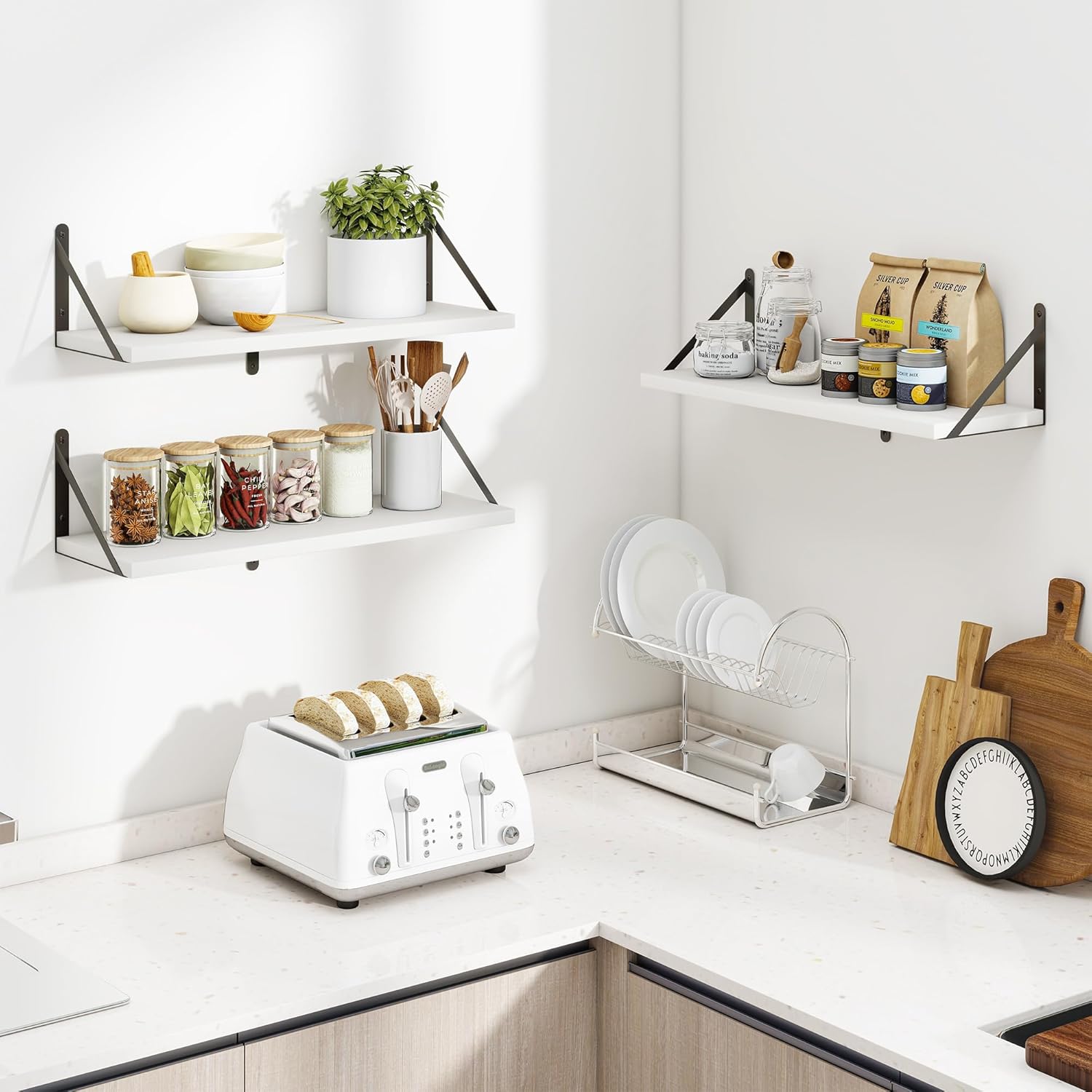 - ăSuitable for Various OccasionsăThese hanging bookshelves are ideal decorations for any room--the floating wooden shelves are perfect for various rooms such as bathrooms,kitchens,living rooms,game rooms,etc.,so they are the best gifts for birthdays or other occasions. These heavy-duty wall-mounted bookshelves can be used for closet organization,storage,and garage organization.