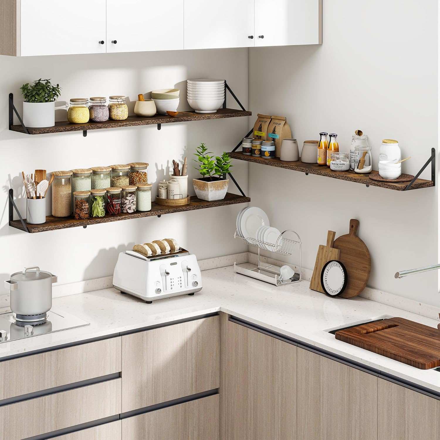 - ăSuitable for Various OccasionsăThese hanging bookshelves are ideal decorations for any room--the floating wooden shelves are perfect for various rooms such as bathrooms,kitchens,living rooms,game rooms,etc.,so they are the best gifts for birthdays or other occasions. These heavy-duty wall-mounted bookshelves can be used for closet organization,storage,and garage organization.