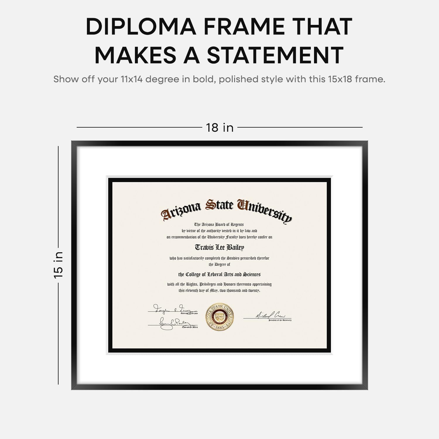 Homeforia 15x18 Diploma Frame Black, High End Metal 15 x 18 Black Certificate Frame with Mat 11 x 14, 18x15 Document Frame Matted to 11x14, Graduation Degree Frames, Tempered Glass, Wall Kit, Set of 1