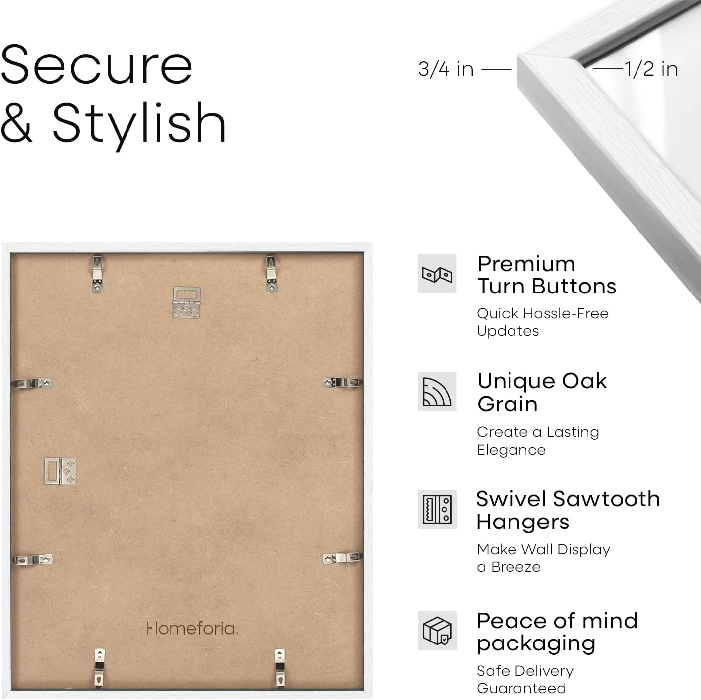 Homeforia 15x18 Diploma White Wood Frame, High End Oak 15 x 18 Certificate Frames with Mat 11 x 14, 15by15 Document Frame Matted to 11by14, Graduation Wooden Frames, Tempered Glass, Wall Kit, Set of 1
