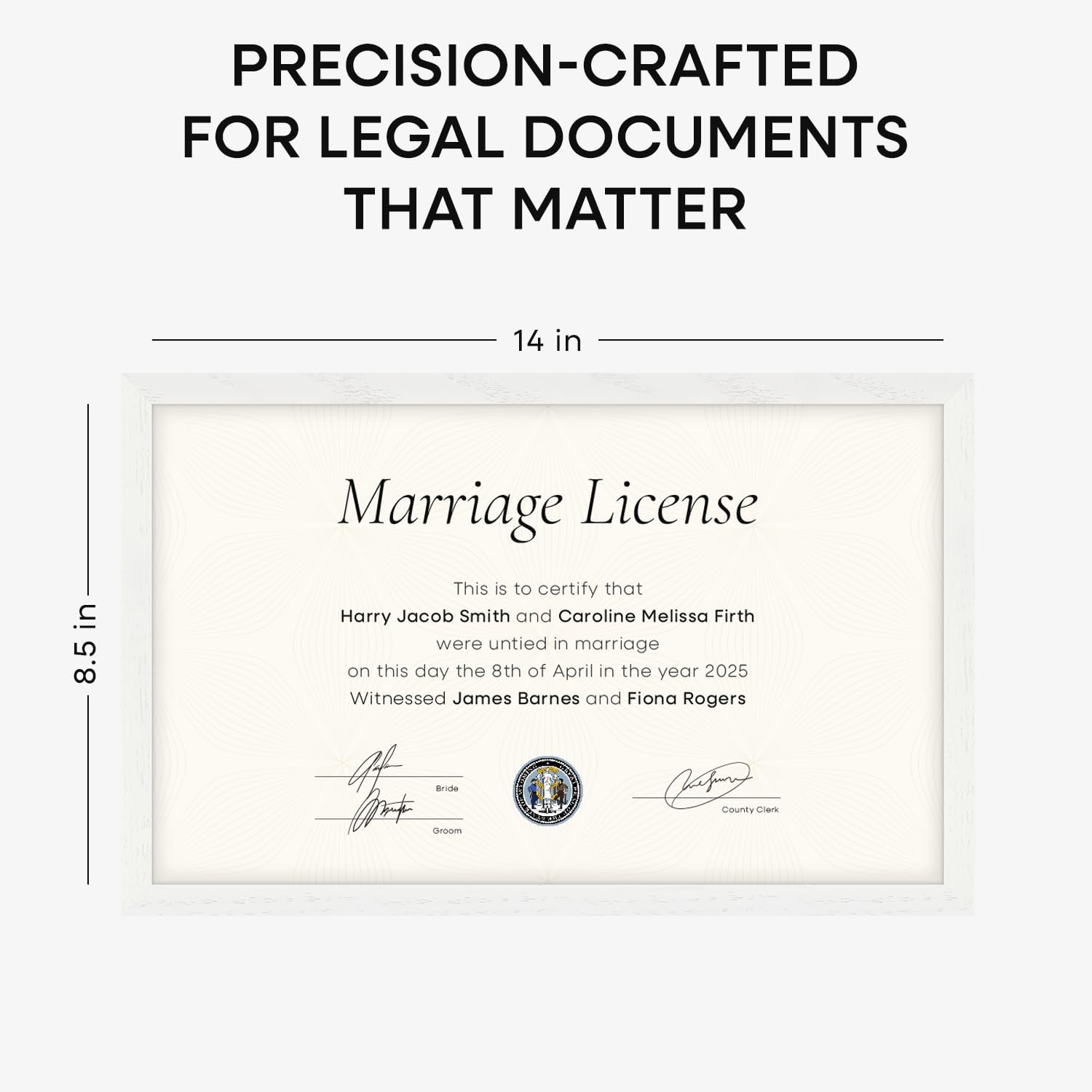 Homeforia 8.5x14 Marriage License Frame White, High End Oak 8.5x14 Certificate White Wood Frames, 8.5by14 Wooden Frame for Wall & Tabletop, 8.5 by 14 Picture Frames, Tempered Glass, Wall Kit, Set of 1