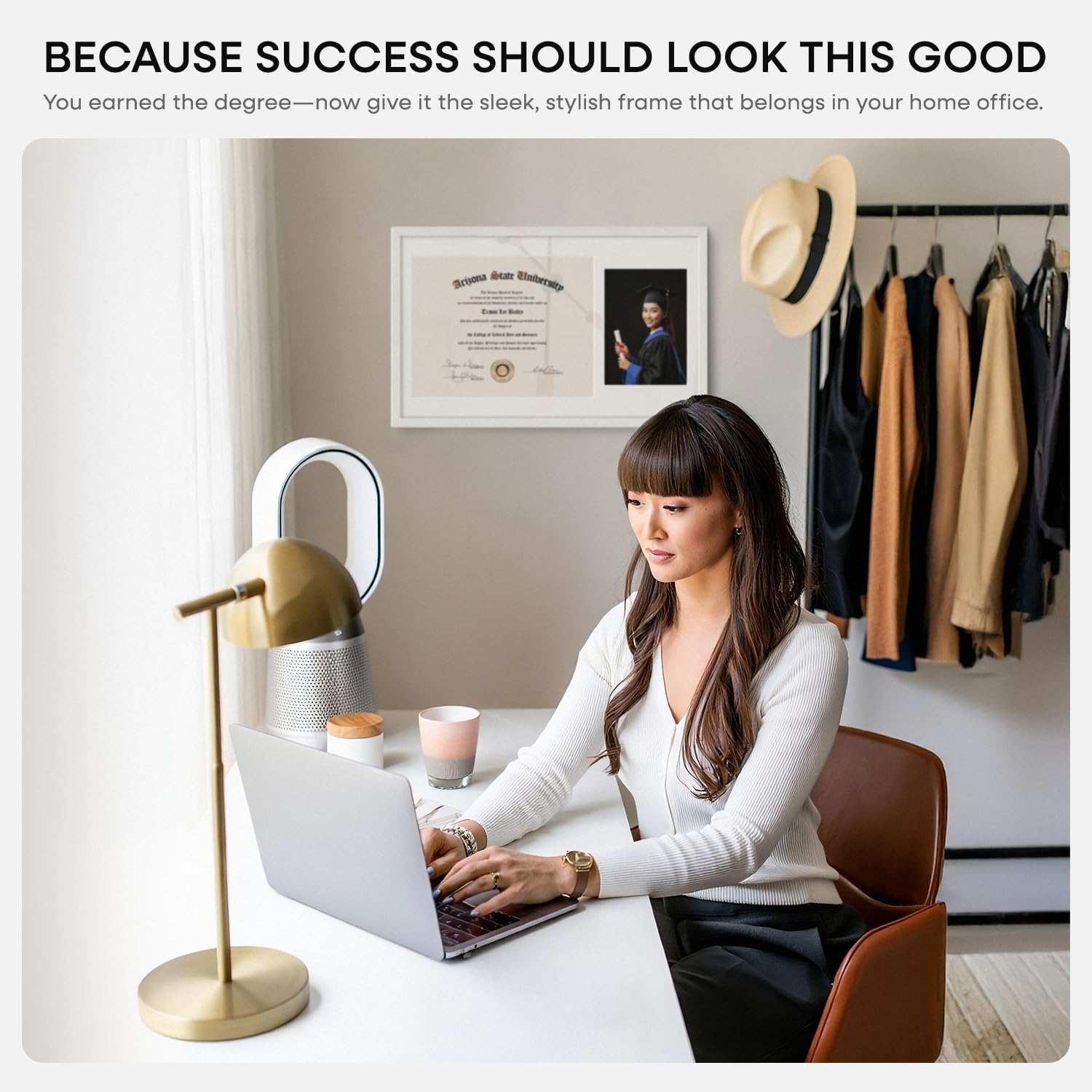 Homeforia 11x18 White Diploma Frame with Photo, High End Oak 11 x 18 Certificate Wood Frame with Mat 8.5x11 Diploma and 5x7 Picture, 18 by 11 Wooden Document Frames, Tempered Glass, Wall Kit, Set of 1