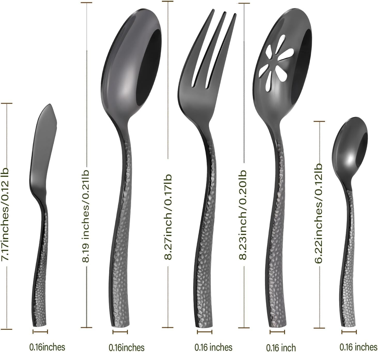- 【5-PIECE SET】Includes 1 serving spoon, 1 serving fork, 1 slotted serving spoon, 1 butter knife and 1 sugar spoon
