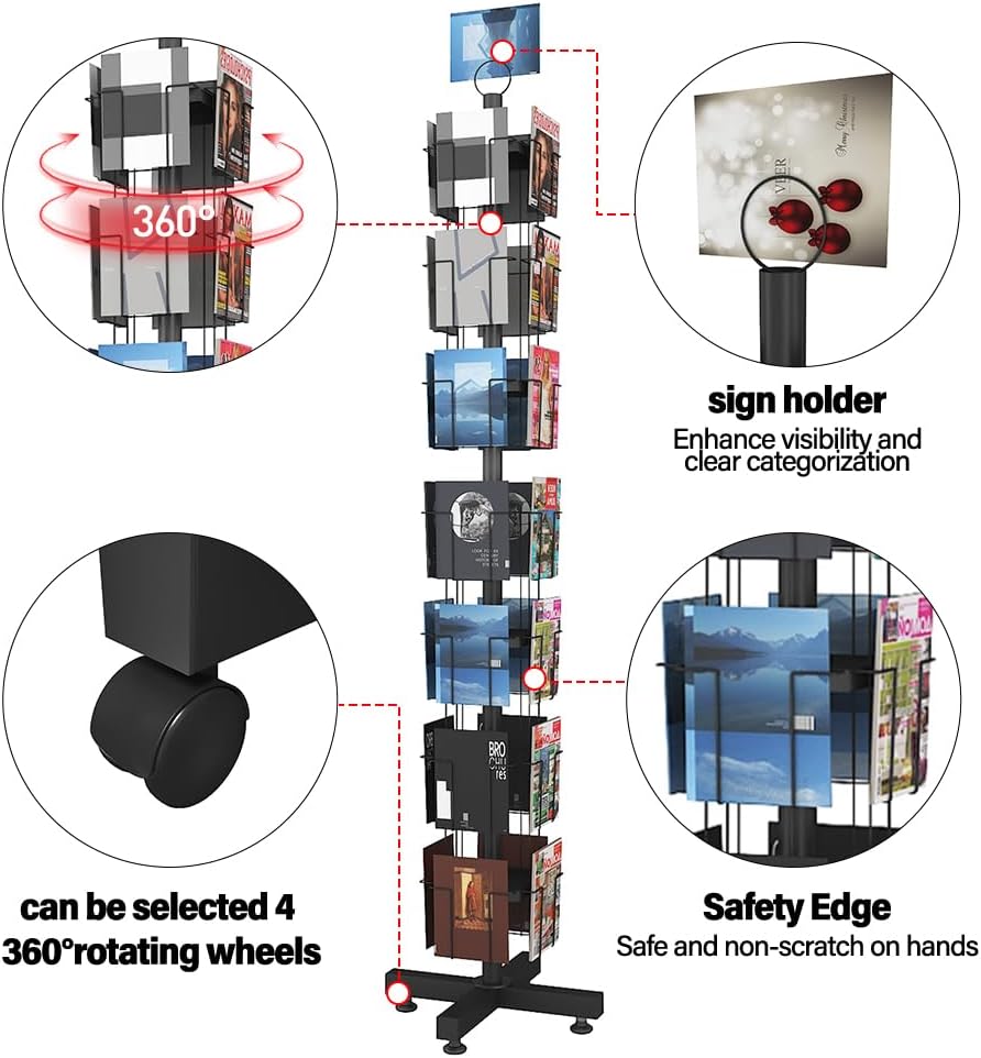 - Sturdy Material:our greeting cards display rack is made of quality metal material,undergoing high-temperature baking paint process to achieve sleek and durable finish, and not easy to break