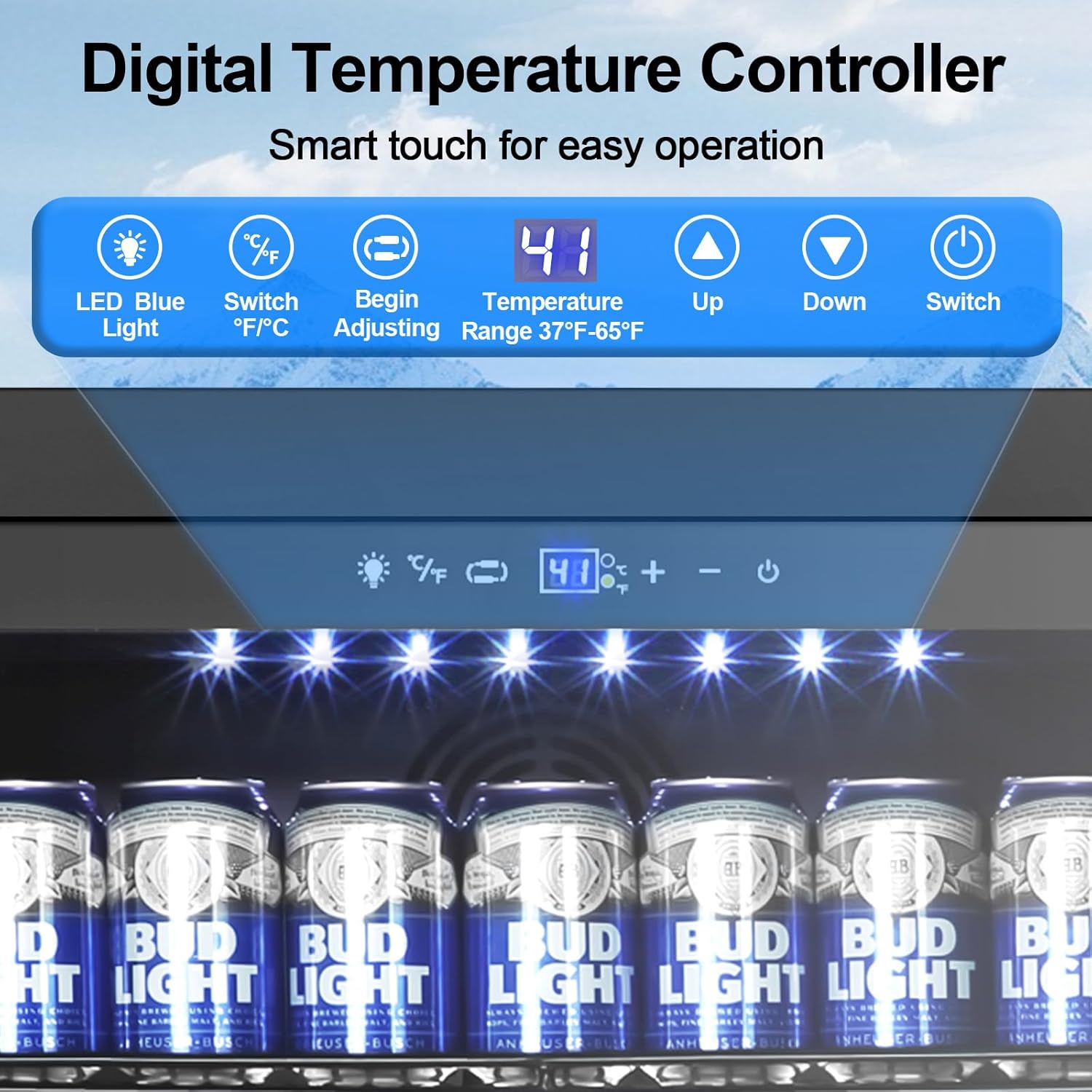 - 24-INCH & 5.2 CU.FT. LARGE CAPACITY: This beverage refrigerator offers a 40% increase in storage capacity, providing 5.2 cubic feet. of space that can hold up to 200 standard-size bottles. It features an integrated activated carbon deodorization system to effectively reduce odors inside the drink fridge, preventing any impact on the taste of your beverages. Ideal for home bars, kitchens, living rooms, offices, or entertainment spaces, it’s both easy to use and elegantly modern.