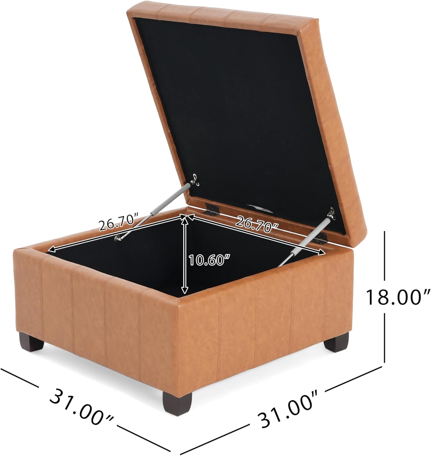 - 【Perfect Dimensions】With a compact yet spacious design of 31.00” W x 31.00” D x 18.00” H, this ottoman is the ideal size for most living spaces. Easy to assemble with minimal effort (just attach the legs), it’s a simple and elegant way to enhance your room’s look and functionality
