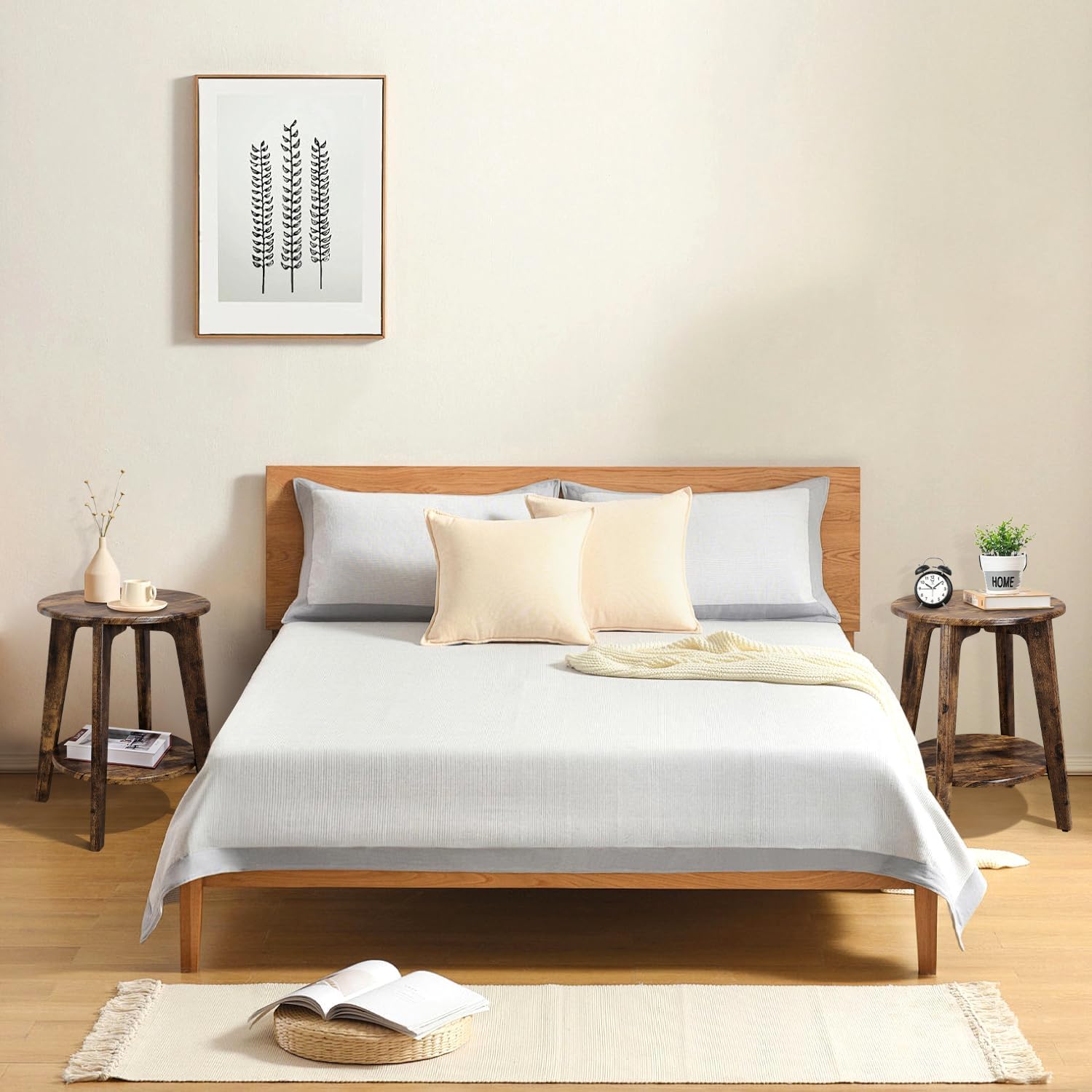 - High Quality & Unique Design: 2 round board as well as 4 legs made of solid wood form the stable foundation of this modern small round side table—this nightstand table boasts a stable, sturdy structure and can hold up to 200 lb in total