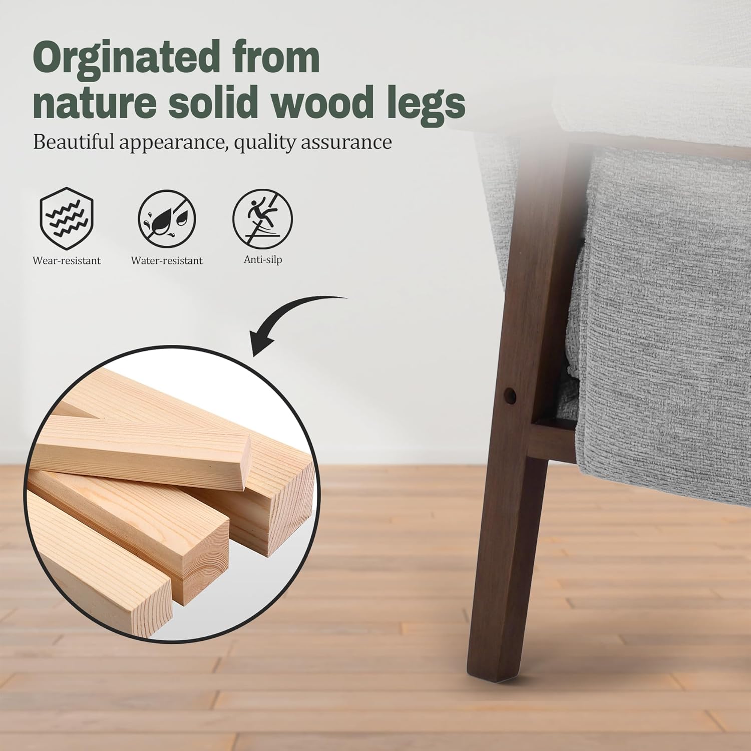 Modern Accent Chair for Living Room Mid Century Arm Chair Upholstered Bedroom Chair Comfy Lounge Chair with Solid Wood Frame, Grey