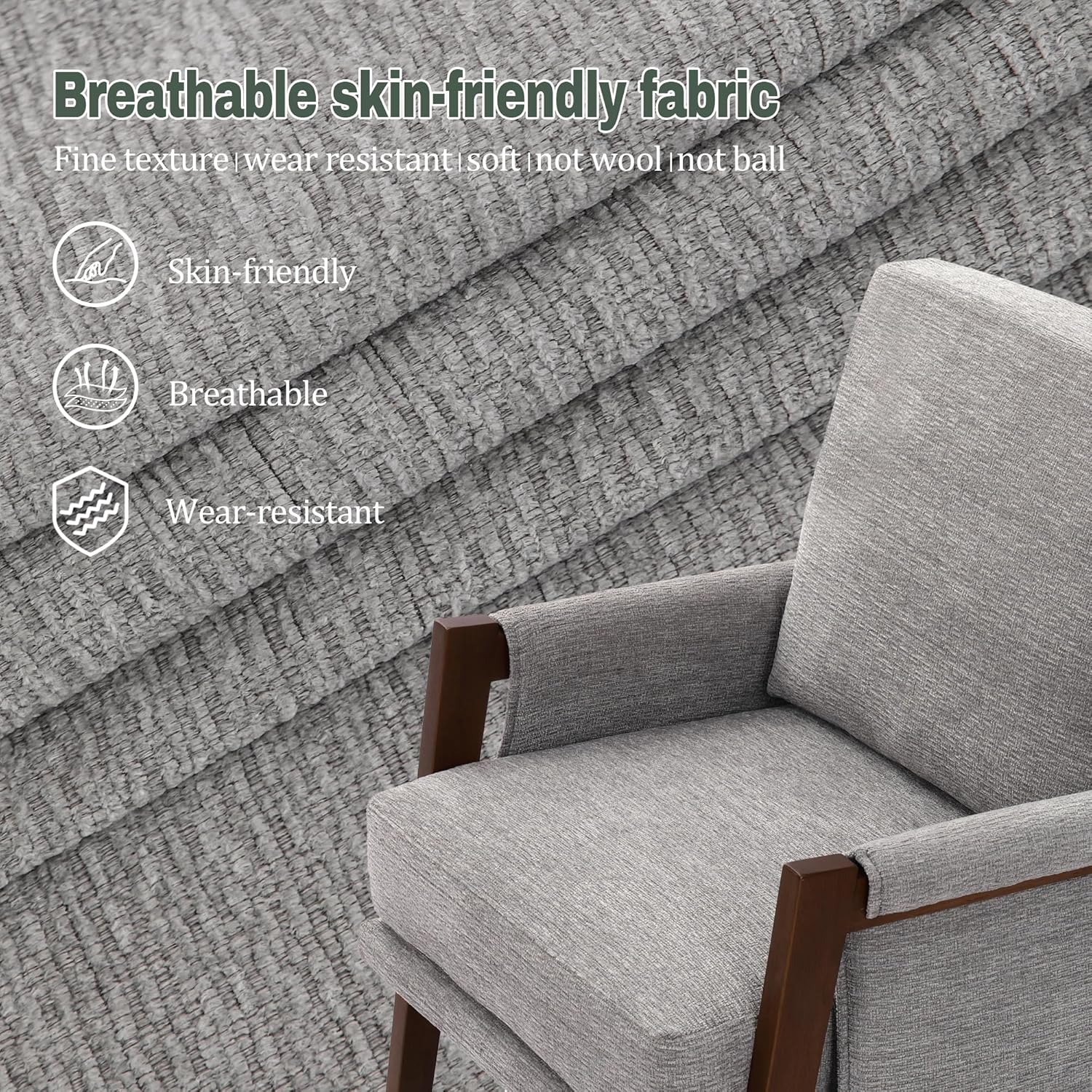 Modern Accent Chairs Set of 2 for Living Room Mid Century Arm Chairs Upholstered Bedroom Chairs Comfy Lounge Chairs with Solid Wood Frame, Grey