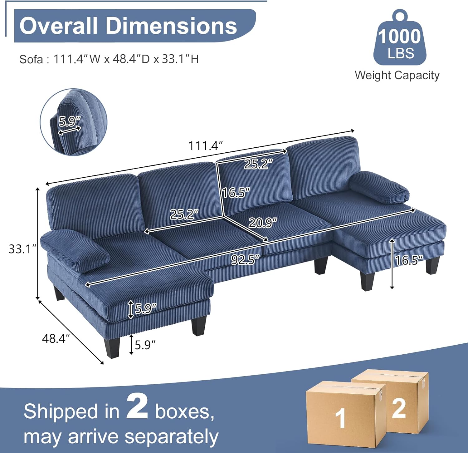 - Product Dimensions : 48.4"D x 111.4"W x 33.1"H
