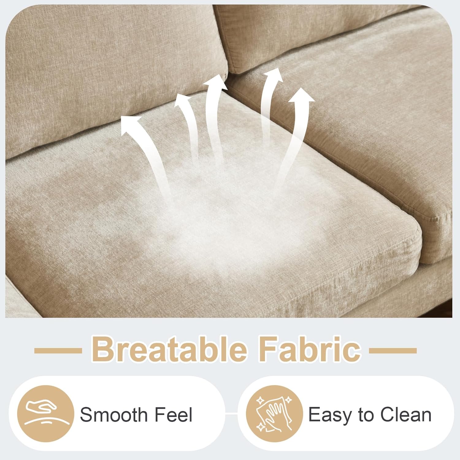 - SOFT & COMFORTABLE - When seated on the couch, you will experience the support of the high-resilience sponge in the seat and back. Occasionally, you can take a nap on the chaise. Covered with breathable fabric, this four-seat sofa offers physical and mental comfort.