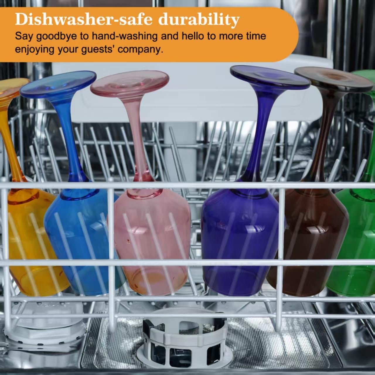 - ăStable Base to Prevent Spills and TippingăThe stable base of Glazvia colored wine glassware ensures they wonât tip over easily.This thoughtful design of the multicolor wine glasses provides stability, reducing the risk of spills and making these wine glasses a practical choice for parties, gatherings, or formal events. Whether you're hosting a dinner party or just relaxing at home, this colored wine glass set give you peace of mind while enhancing your wine experience.