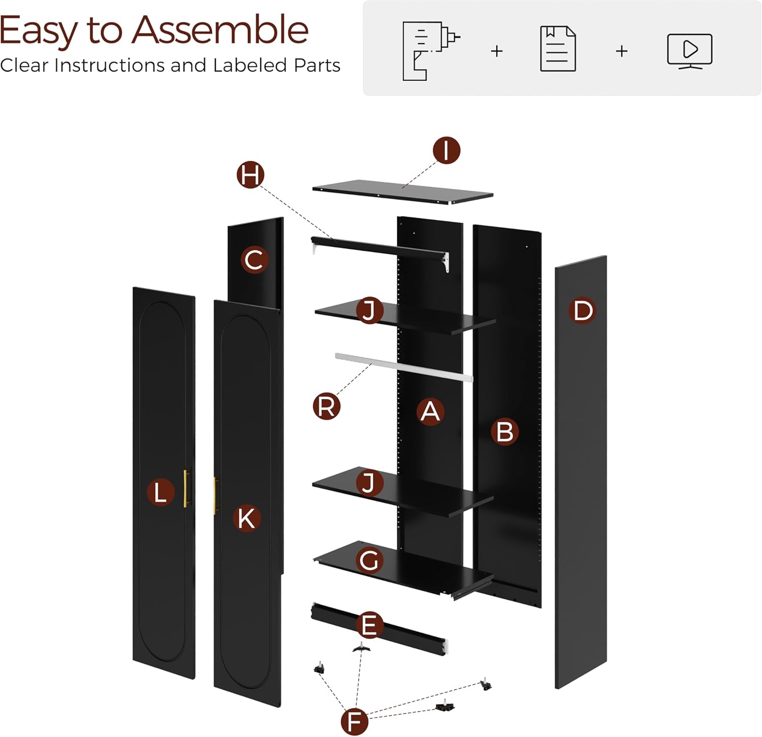 - Easy Installation: Our wardrobe armoire comes with clear and complete parts and detailed installation instructions. One person can also assemble it quickly. Upgrade your bedroom storage with a high wardrobe!