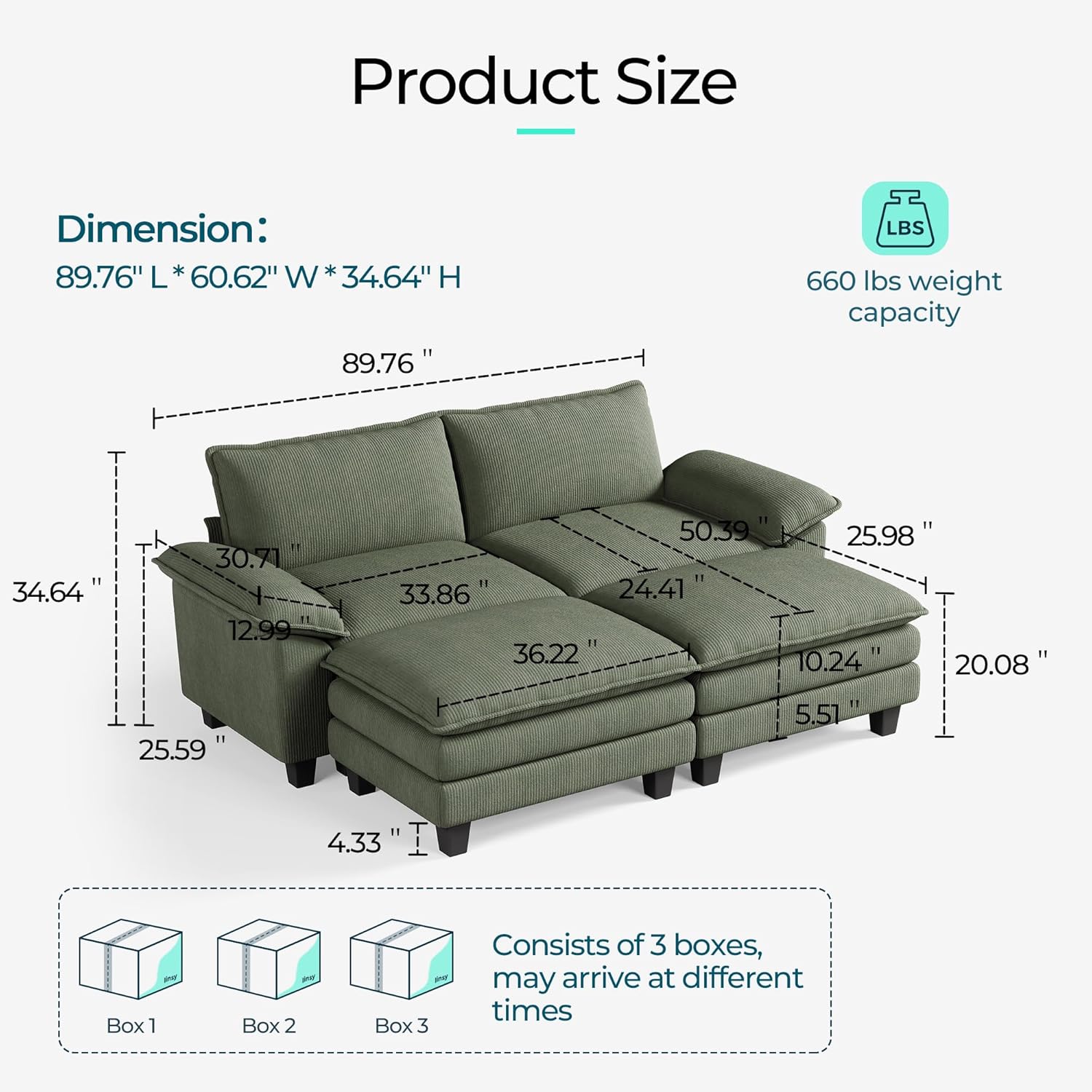 - Product Dimensions : 60.6"D x 89.7"W x 34.6"H