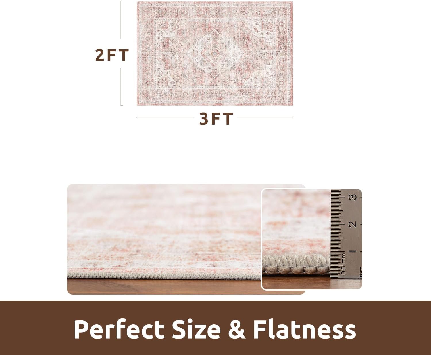AMOAMI-2X3 Small Rug-Washable Rugs Entryway Mat Indoor-Soft Vintage Non Slip Rugs for Kitchen Laundry Room Bathroom Pink Decorative Accent Rug for in Front of Sink 24 Inch x36 Inch