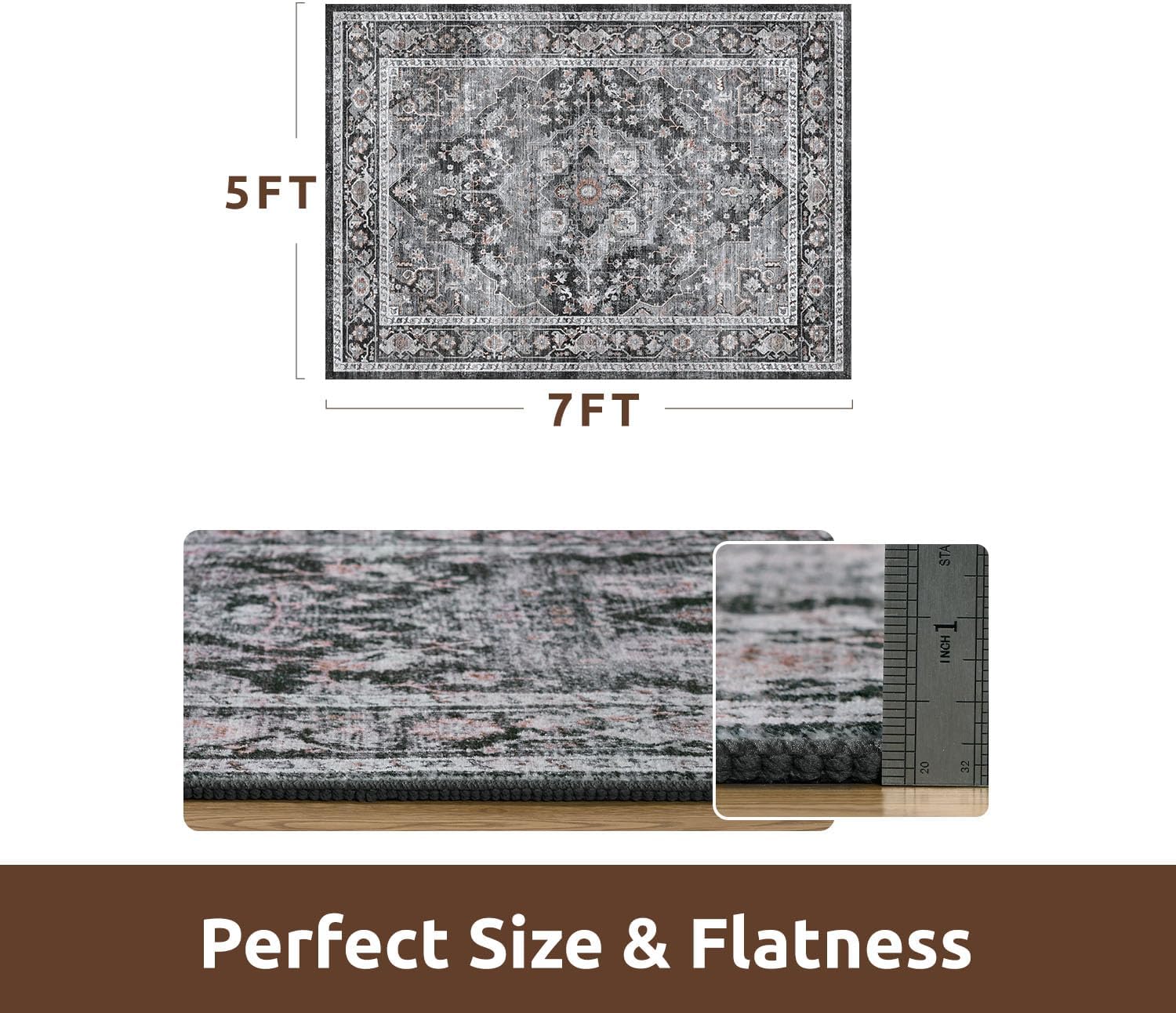AMOAMI-Area Rug 5X7 Rugs for Living Room-Vintage Soft Black Rugs for Bedroom-Non Slip Carpet-Machine Washable Rug for Dining Room Living Room Bedroom Office Under Table Dark Grey & Black