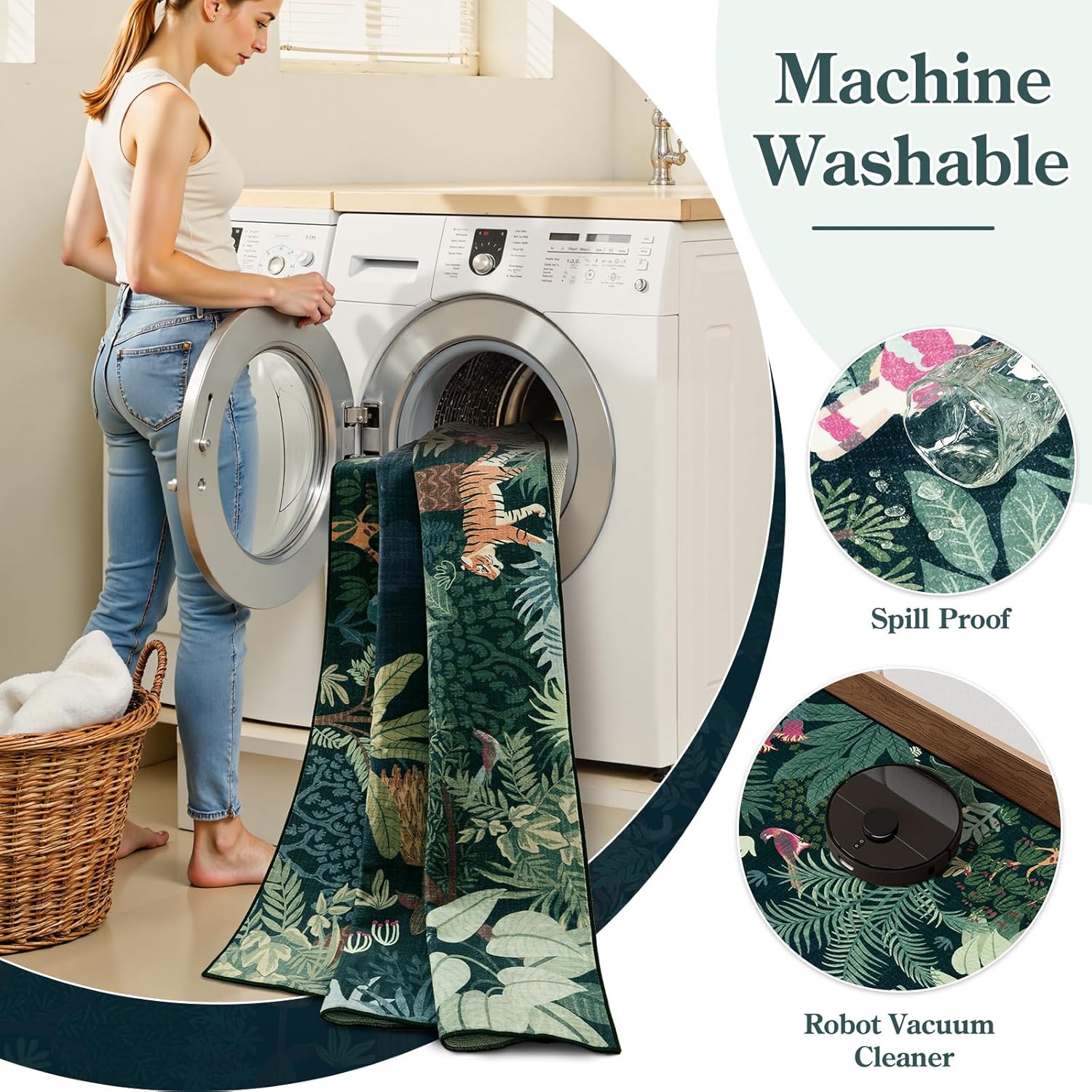 LIVEBOX Washable Jungle Dark Green Rugs 9x12 for Living Room, Stain Resistant Soft Kids Area Rugs for Bedroom, Non-Skid Modern Dining Room Rug Floor Carpet for Playroom Kids Nursery
