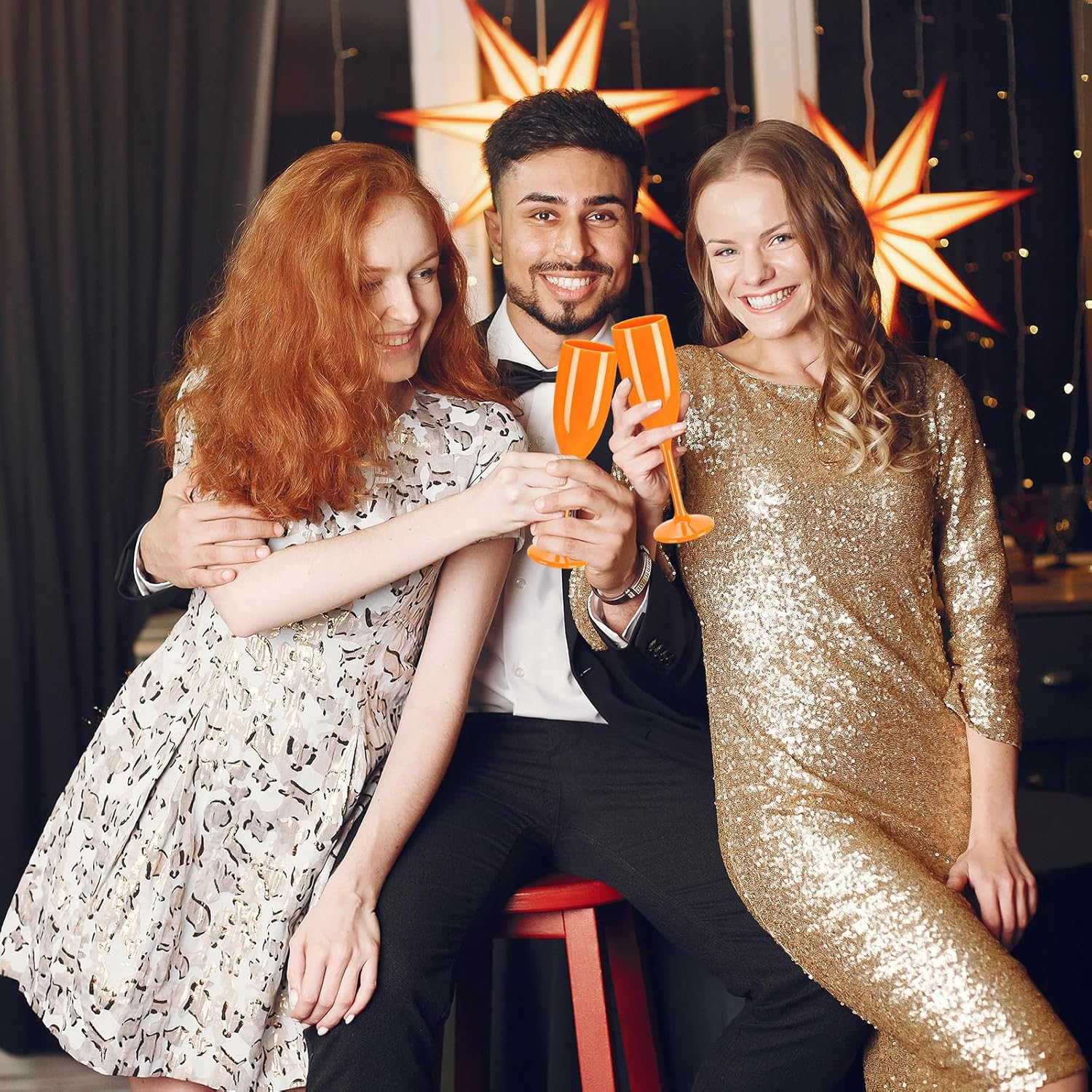 XUWAIDSGN Acrylic Champagne Flutes Toasting Glasses Unbreakable Mimosa Bar Reusable Wine Glasses Vintage Champagne Flutes Stemmed Drinking Cups 5.4 OZ for Christmas Birthday (24, Orange)
