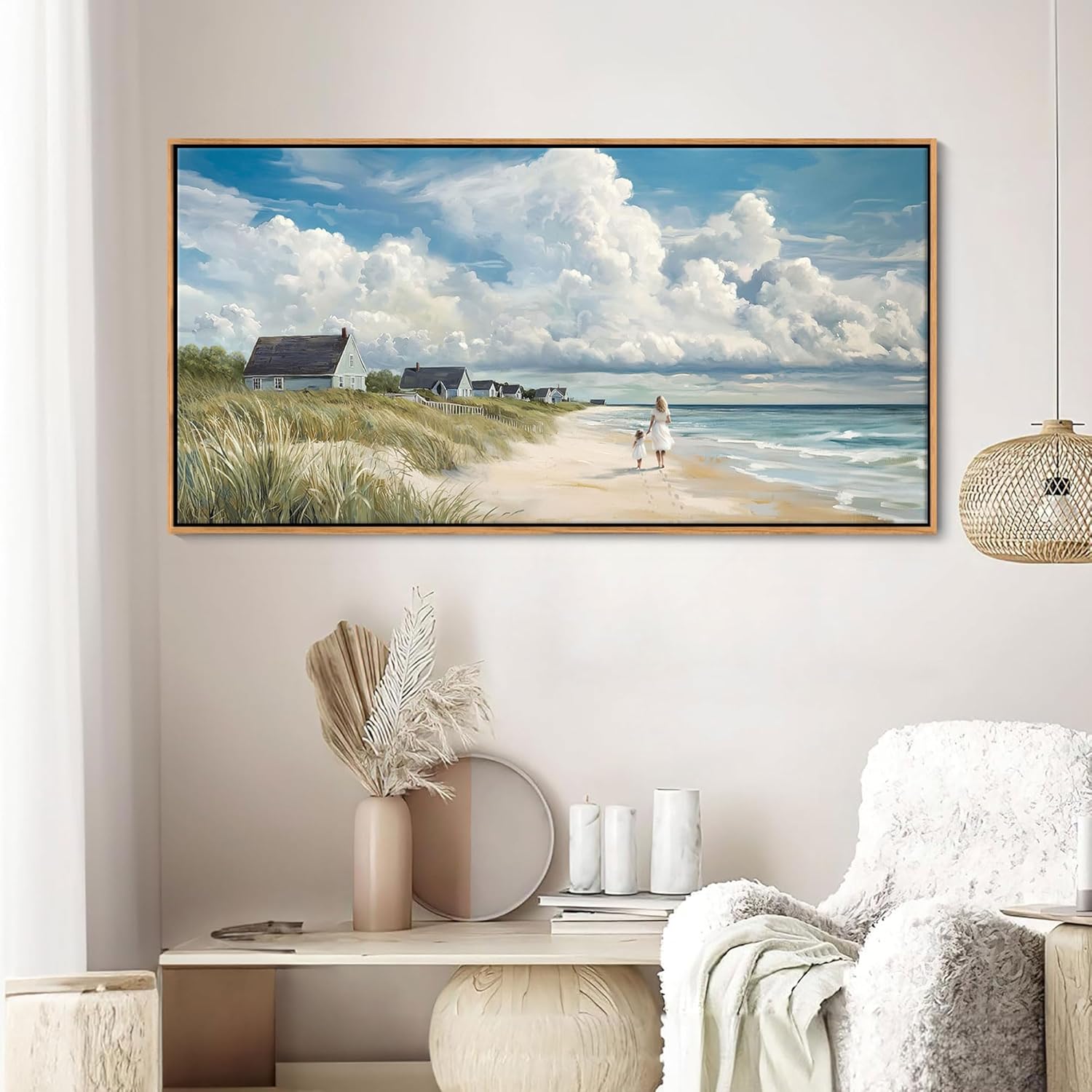 - Ocean and Beach Painting: Made with high-definition canvas, eco-friendly inks, and a sturdy wooden frame, this artwork is fade-resistant, waterproof, and UV-resistant, ensuring it stays vibrant for years.
