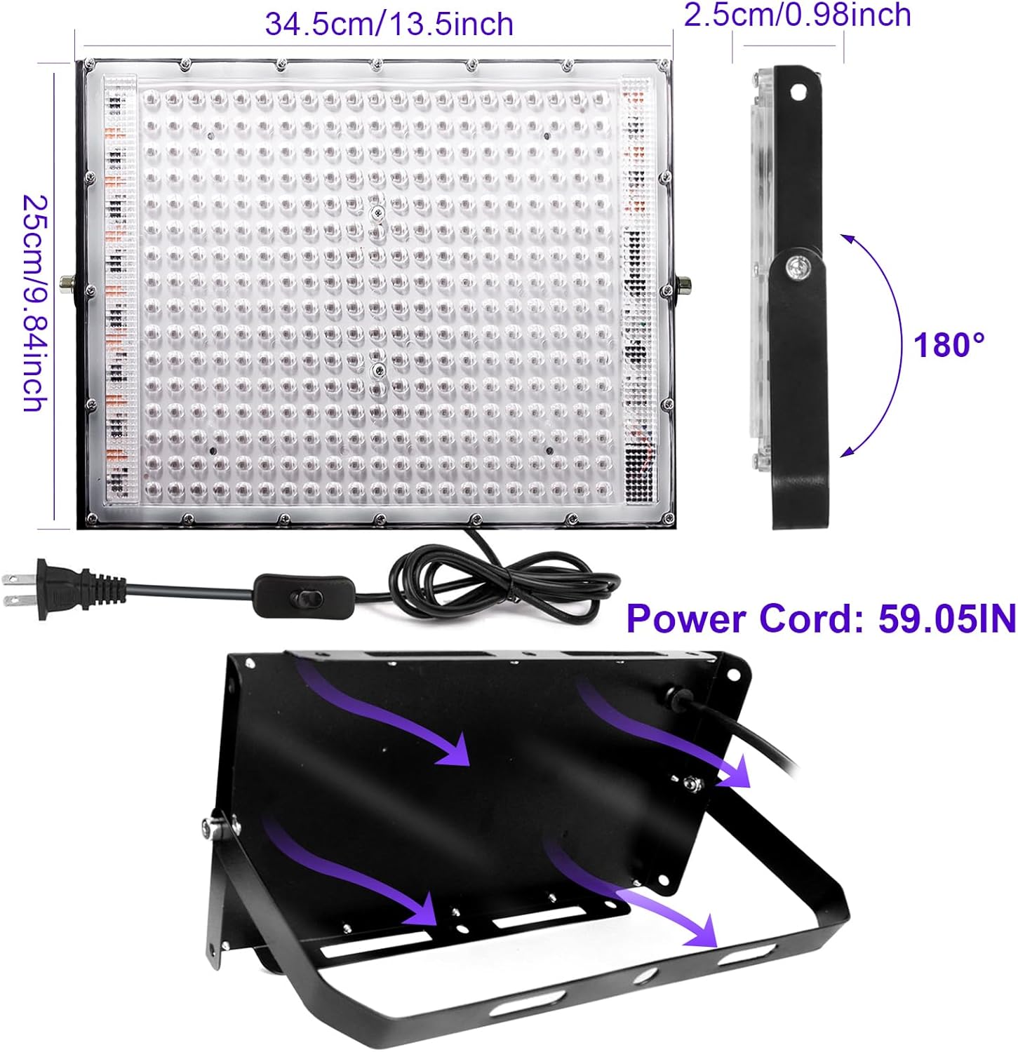 2 Pack 300W Black Lights, Blacklight Flood Light with Plug and Switch,for Glow Party, Black Light Party, Halloween, Body Paint, Neon Glow, Fluorescent Poster, Stage Lighting