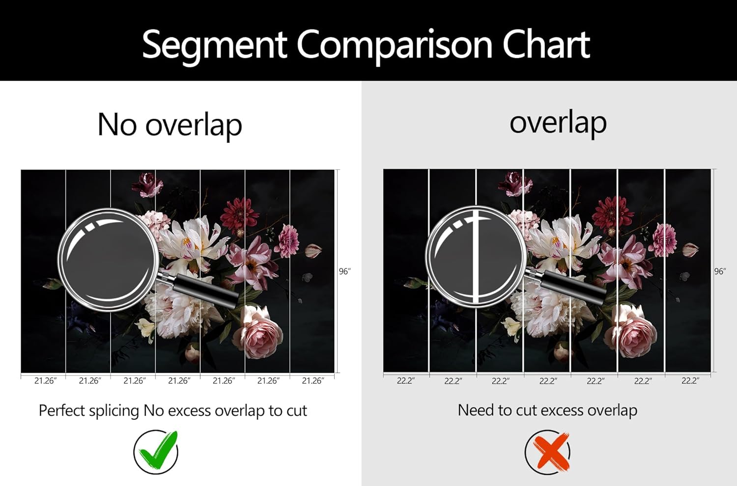 - Mural Size: The total size of this mural wallpaper is 149" x 96" / 378CM x 244CM (W x H), cut into 7 pieces, each measuring 21.26" x 96", for easy installation.