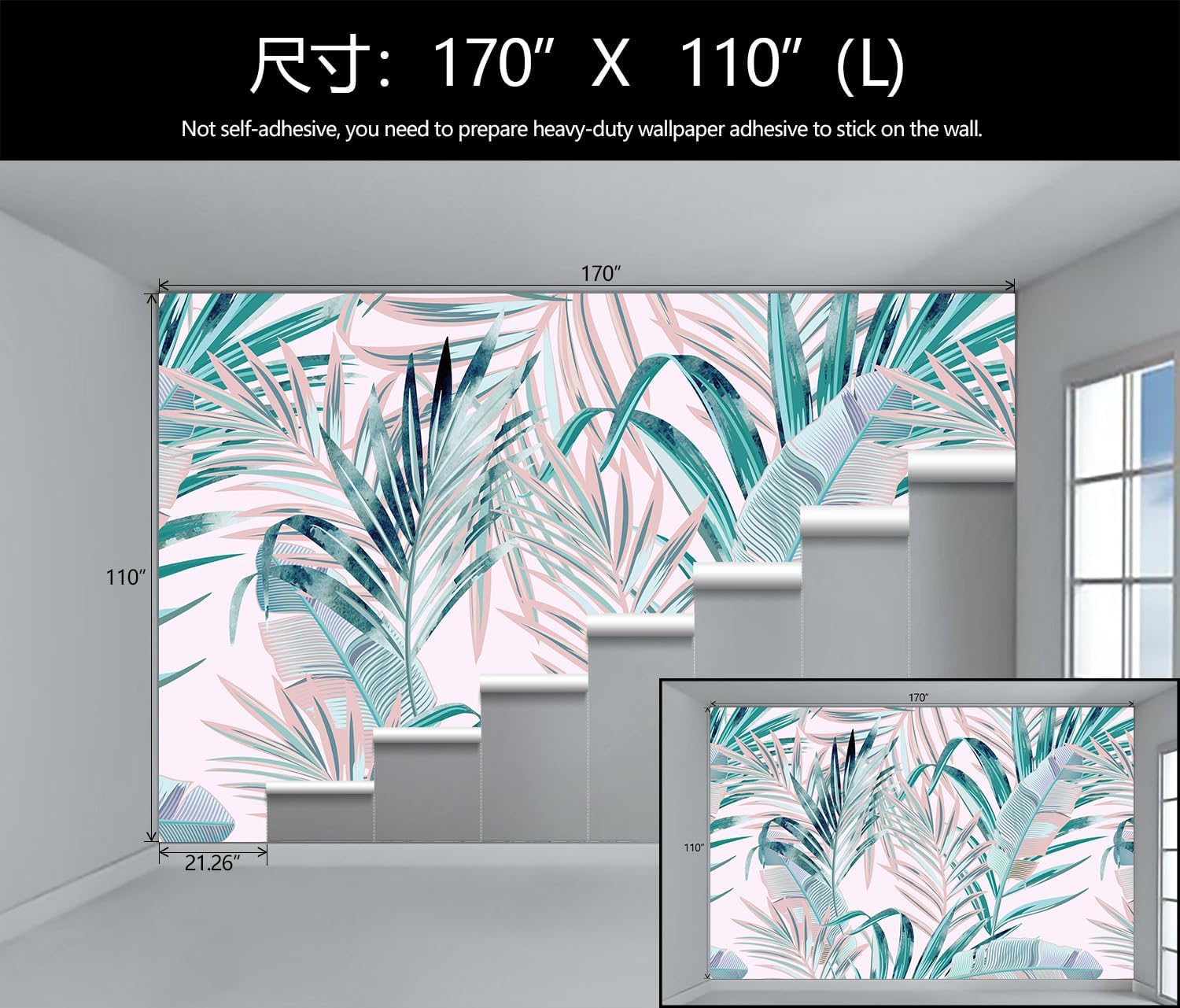 - Mural Size: The total size of this mural wallpaper is 170" x 110" / 432CM x 280CM (W x H), cut into 8 pieces, each measuring 21.26" x 110", for easy installation.