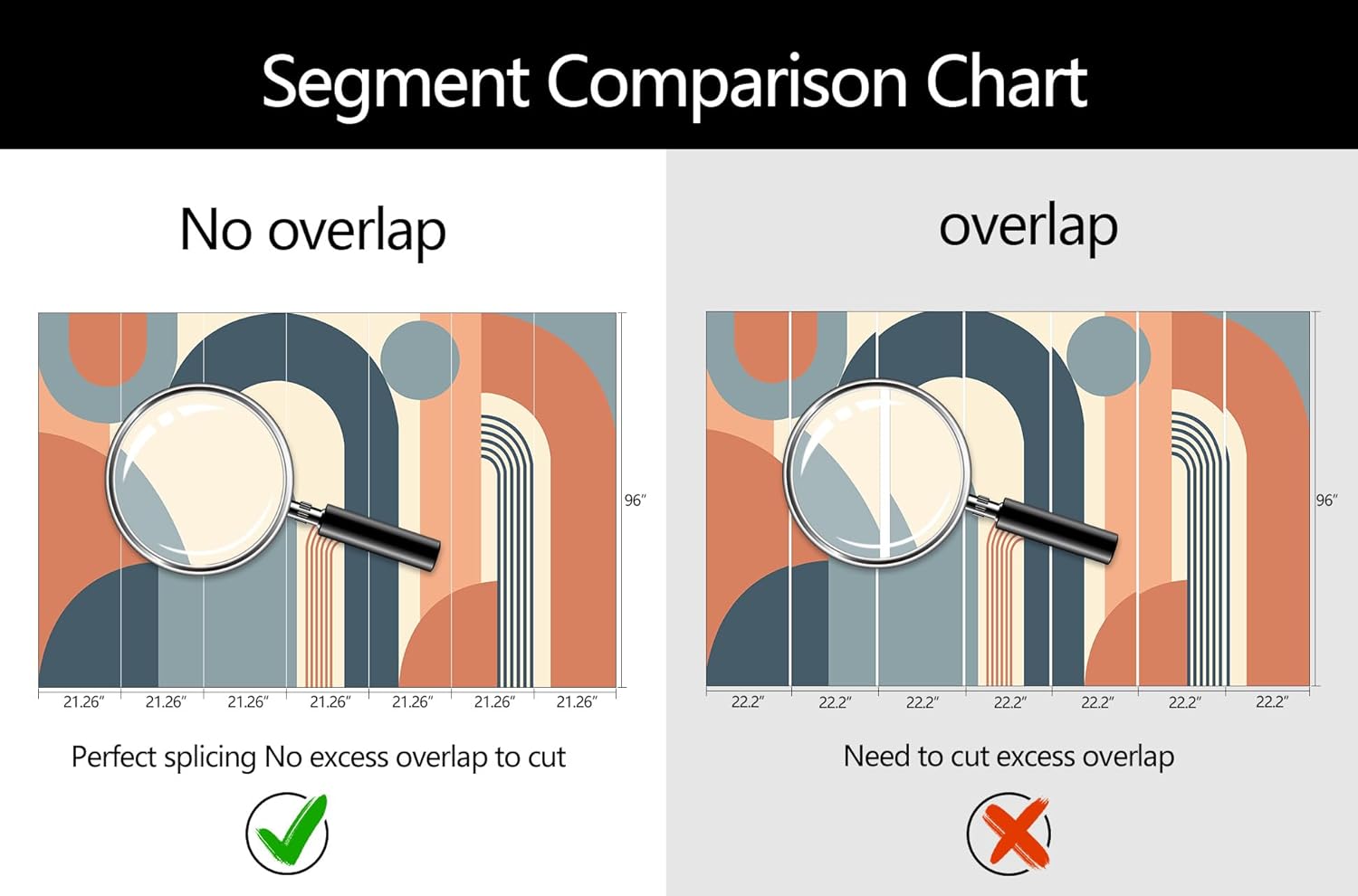 - Mural Size: The total size of this mural wallpaper is 149" x 96" / 378CM x 244CM (W x H), cut into 7 pieces, each measuring 21.26" x 96", for easy installation.