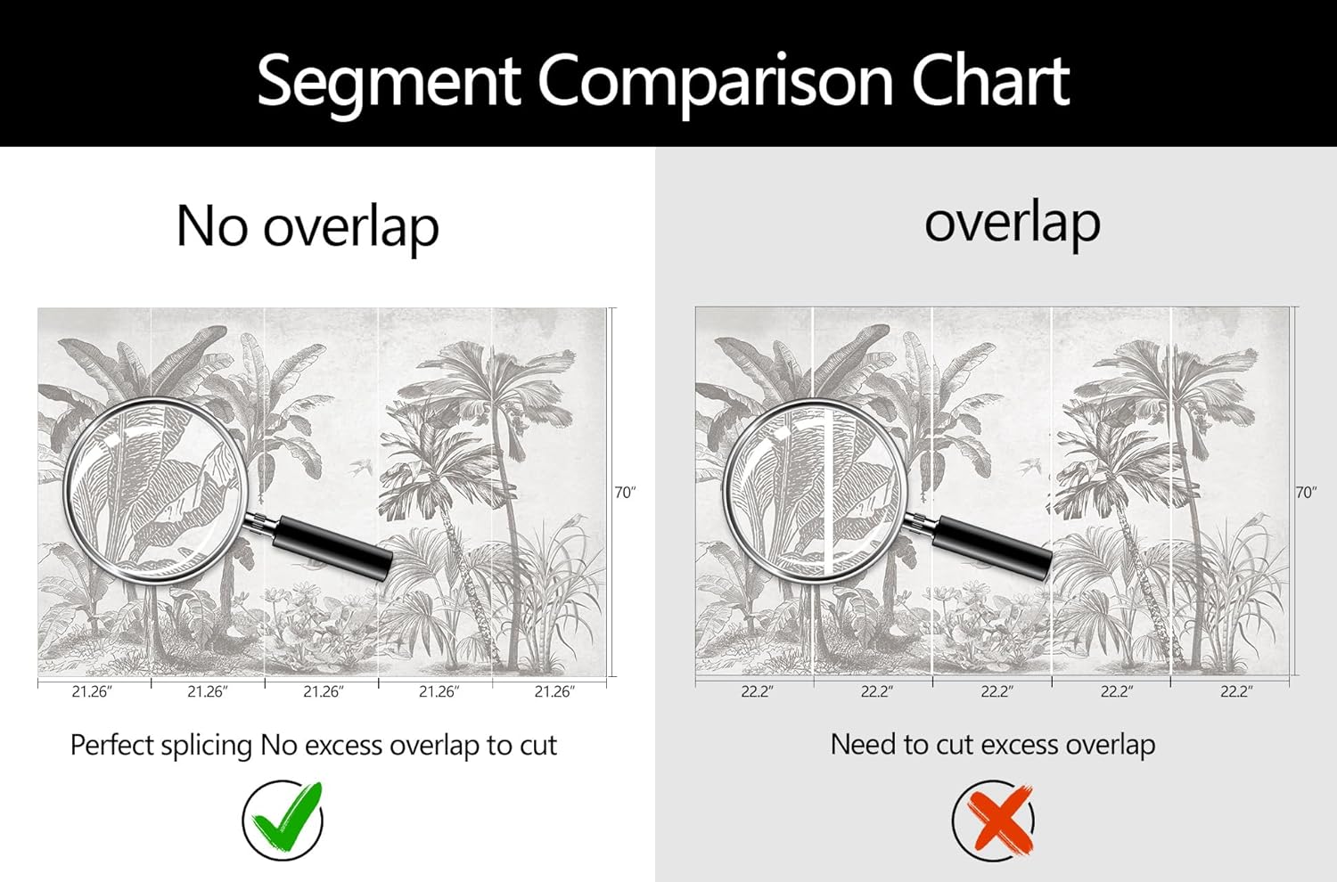 - Mural Size: The total size of this mural wallpaper is 106" x 70" / 270CM x 178CM (W x H), cut into 5 pieces, each measuring 21.26" x 70", for easy installation.