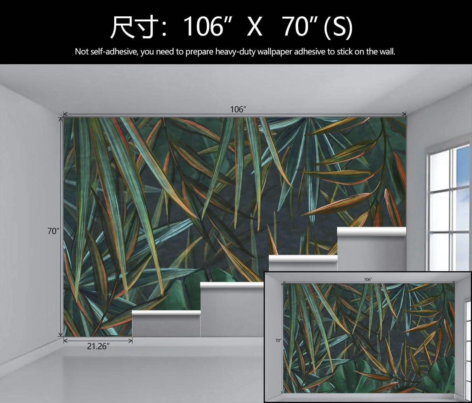 - Mural Size: The total size of this mural wallpaper is 106" x 70" / 270CM x 178CM (W x H), cut into 5 pieces, each measuring 21.26" x 70", for easy installation.