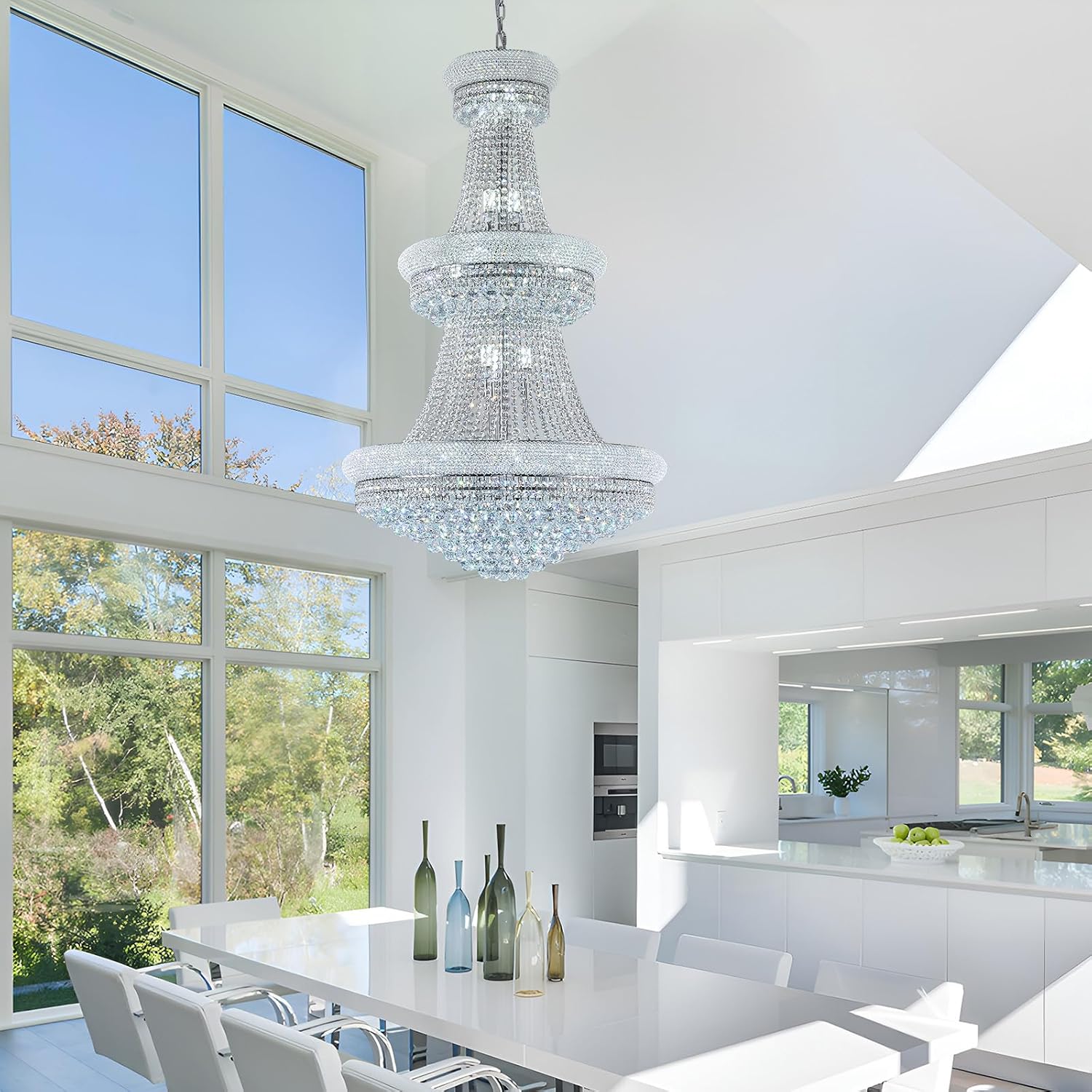 31 - Light Large Empire Crystal Chandelier for High Ceiling Foyer Entryway Staircase Living Room Dining Room Chrome Finish