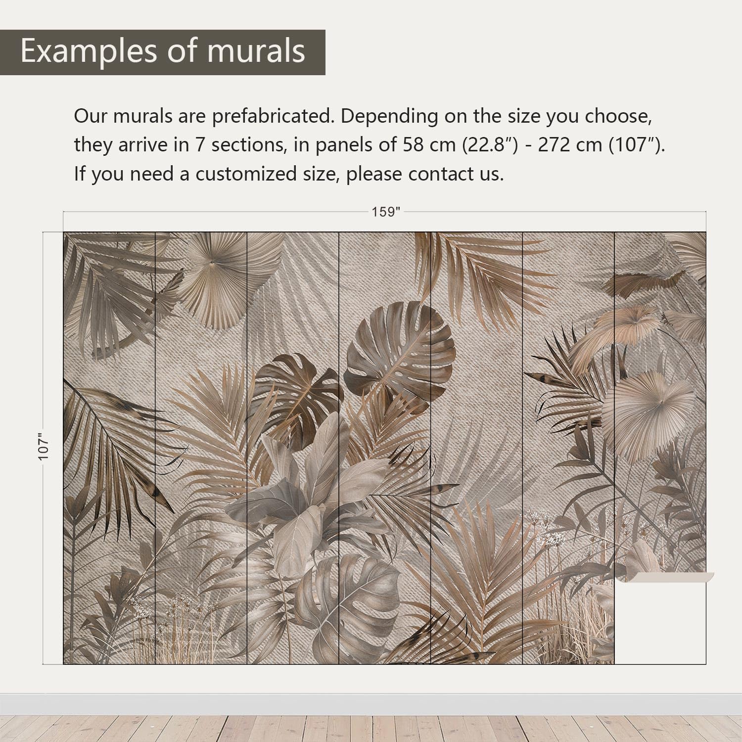 - Size note: Mural measures 159"W x 107"H and is divided into 7 sections, each section is labeled with a number underneath, eliminating the need to overlap patterns when installing.