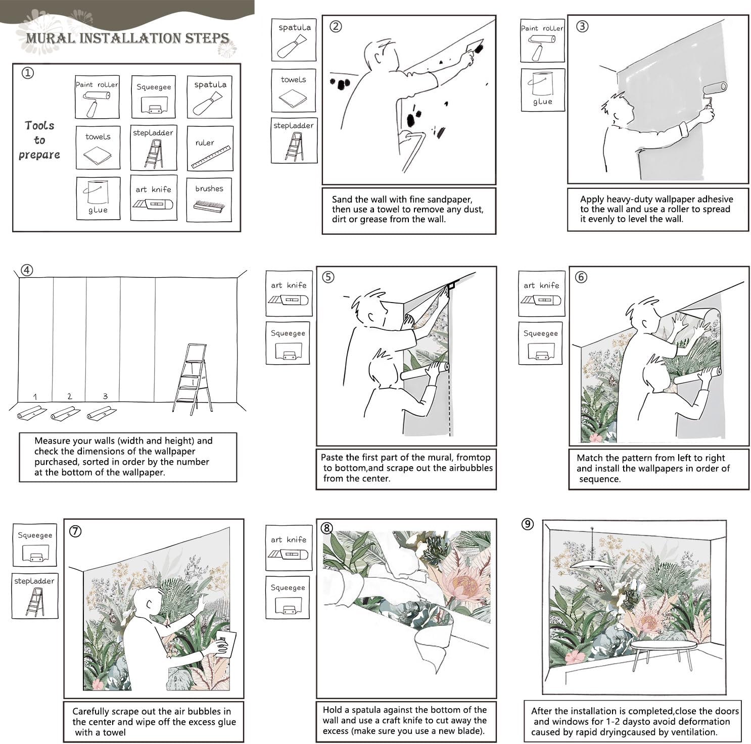 - Tips: Mural can not be peeled and pasted, you need to buy a heavy duty wallpaper glue