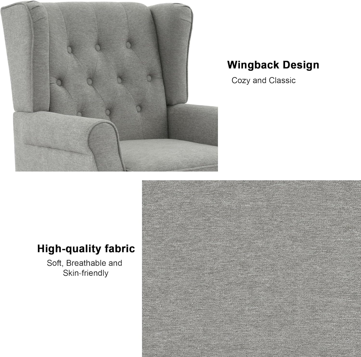 - High Back Accent Chair: The wingback of living room chairs is higher, which can better relieve the pressure on the back and waist, and bring a comfortable sitting experience