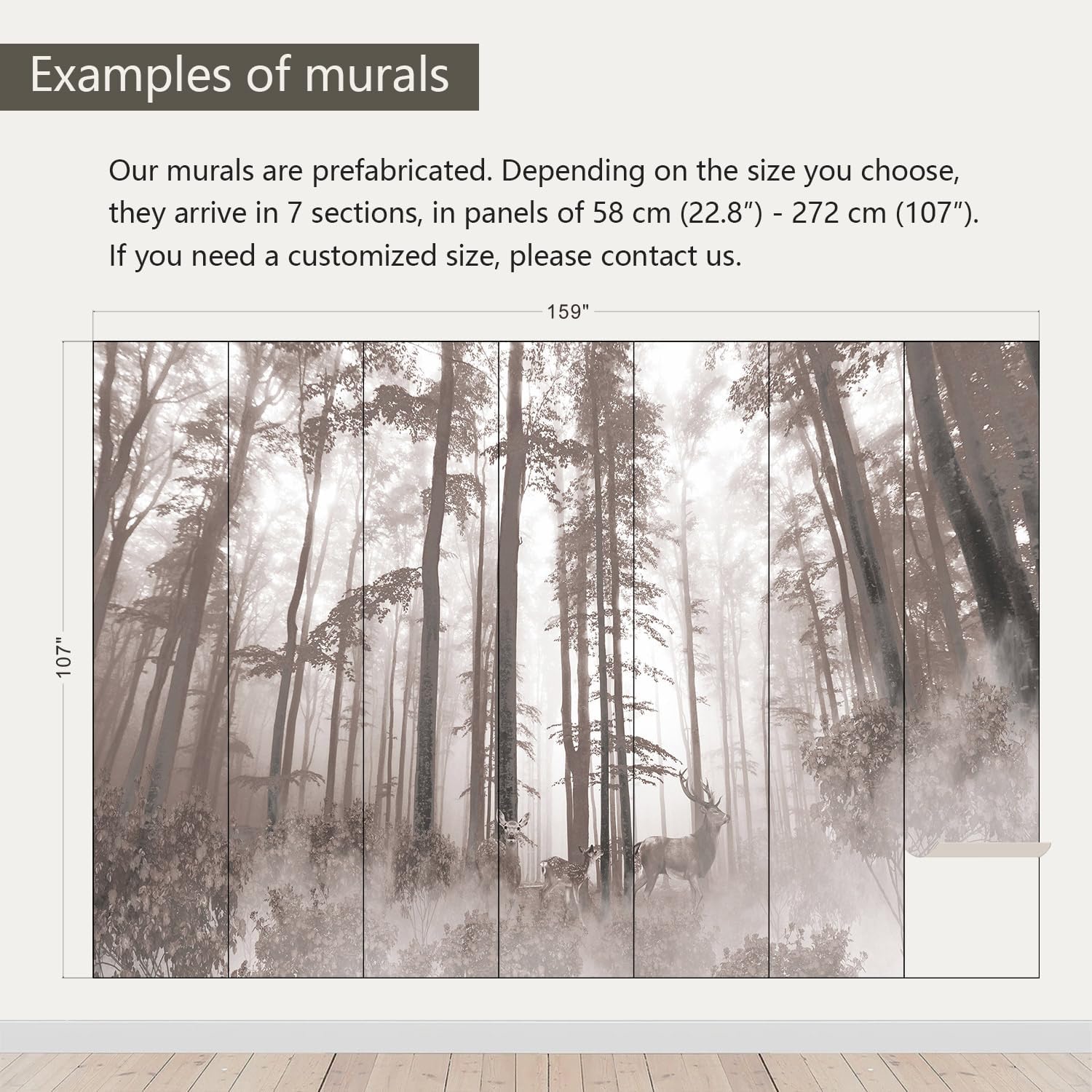 - Size note: Mural measures 159"W x 107"H and is divided into 7 sections, each section is labeled with a number underneath, eliminating the need to overlap patterns when installing.