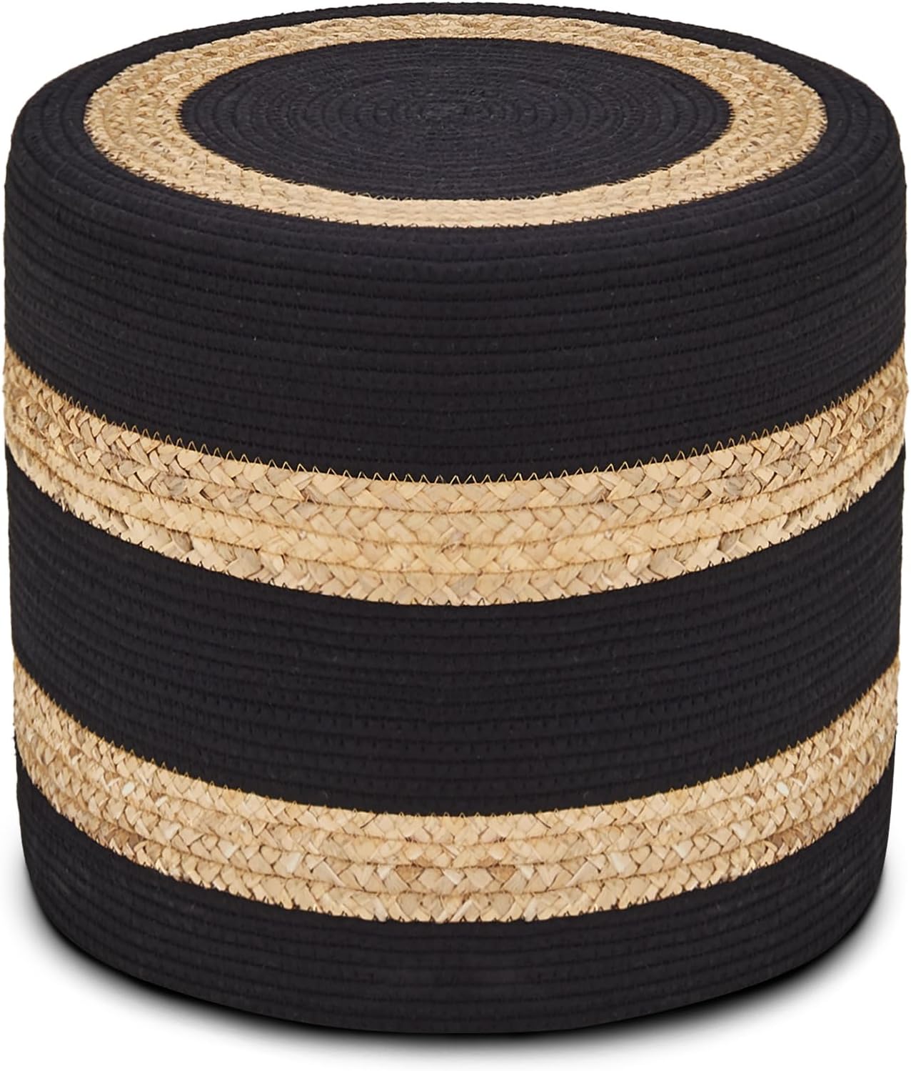 Cplxroc Ottoman Poof, Natural Seagrass Poufs, Hand Weave Round Footstool, Pouffe Accent Chair, Home Decorative Seat, Boho Deco Floor Chair for Living Room, Bedroom (18inch 68LH)