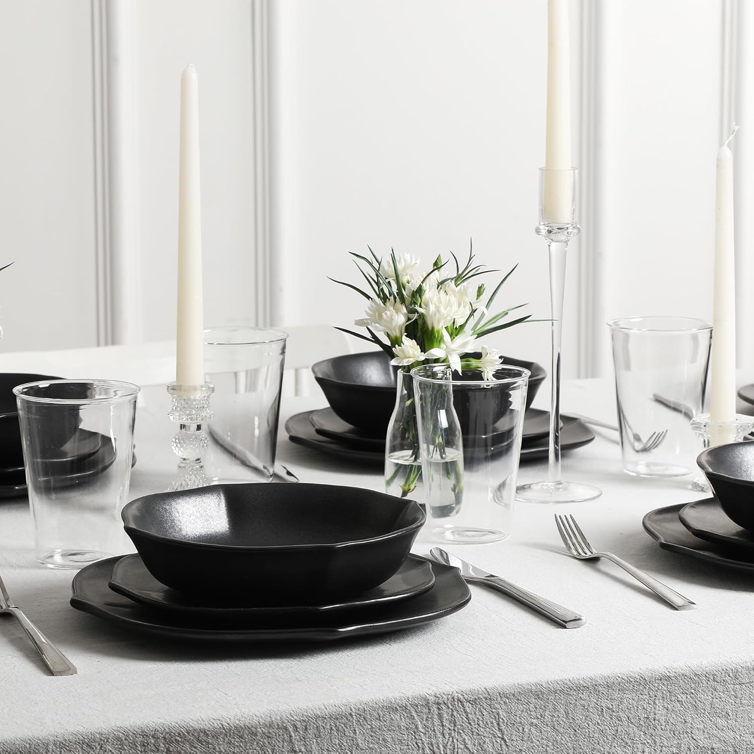 Stone Lain Baskerville 32-Piece Dinnerware Set Stoneware, Borosilicate Glass, Black