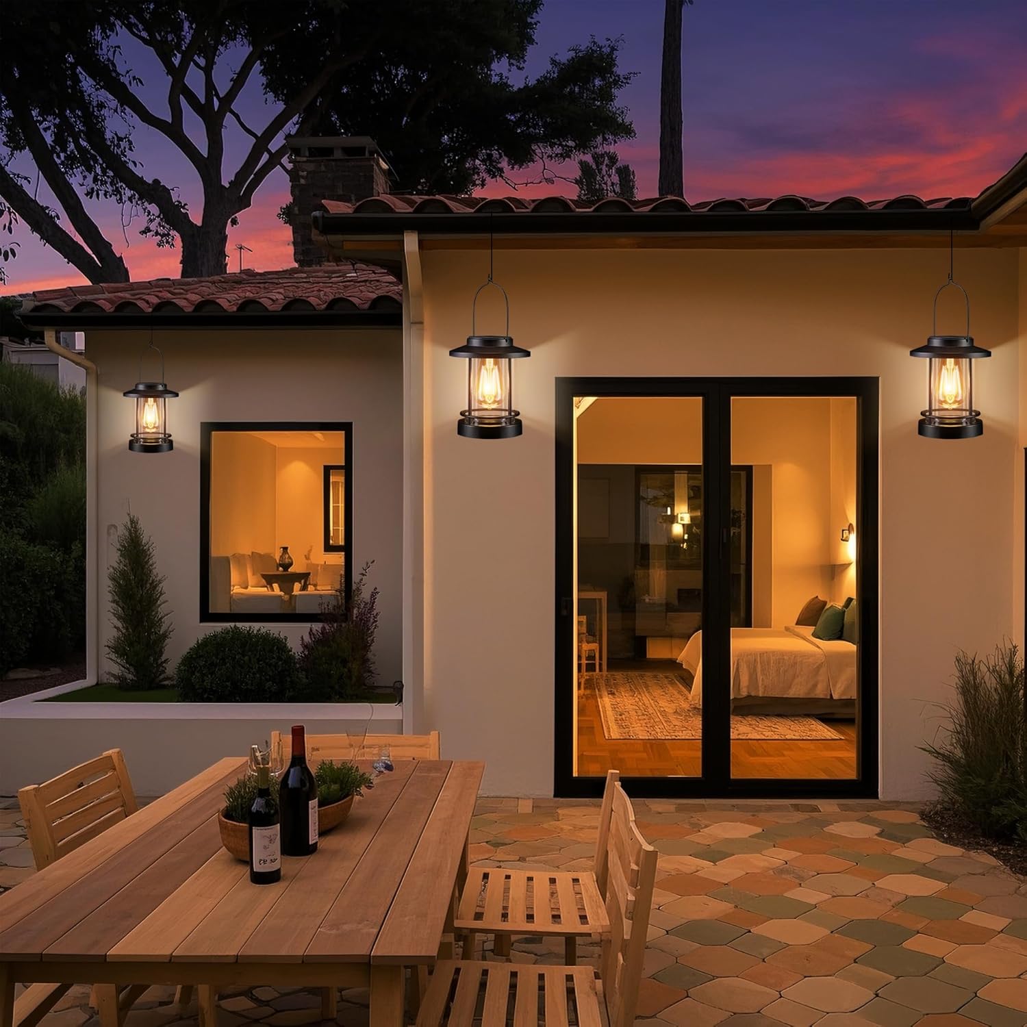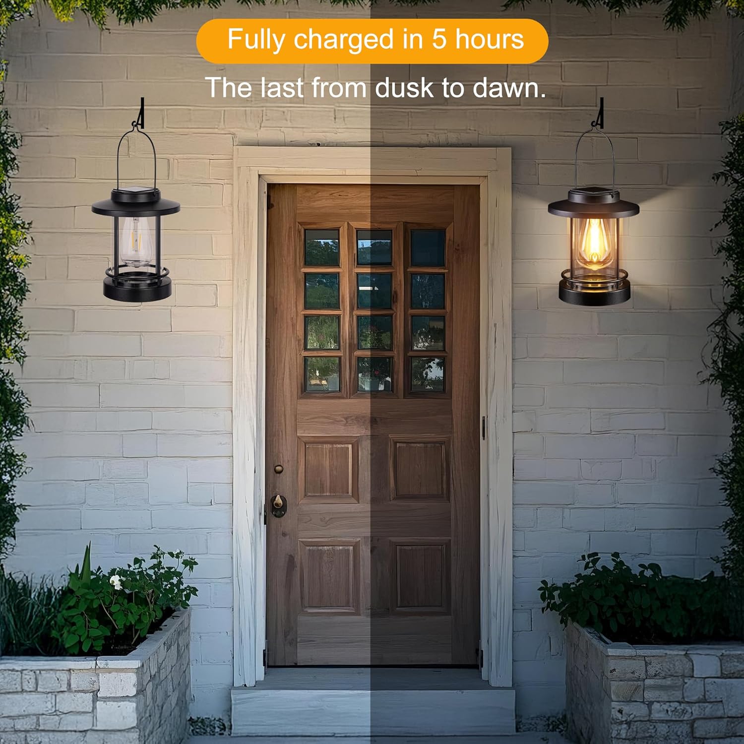 - AUTOMATIC ON/OFF: Equipped with a built-in light sensor, these hanging solar lanterns automatically turn on at dusk and off at dawn, providing hands-free operation. No wiring or external power source is needed. After 6-8 hours of sunlight, they deliver up to 12-15 hours of continuous, steady illumination from dusk to dawn.