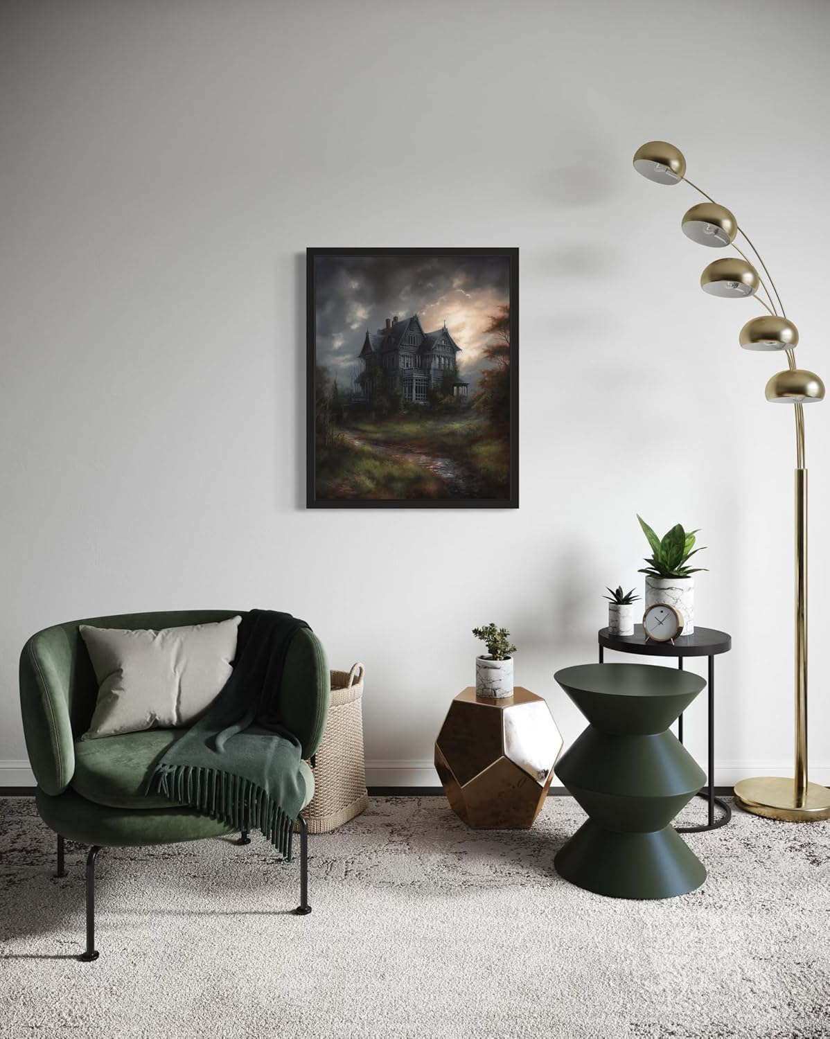 Haunted House Poster Art Print, Halloween Scary Vintage Wall Art Academia Spooky Painting Decoration for Horror Prints, Gothic Posters Bedroom Decor 89 (Haunted House, 8 x 10 inches, Black Frame)