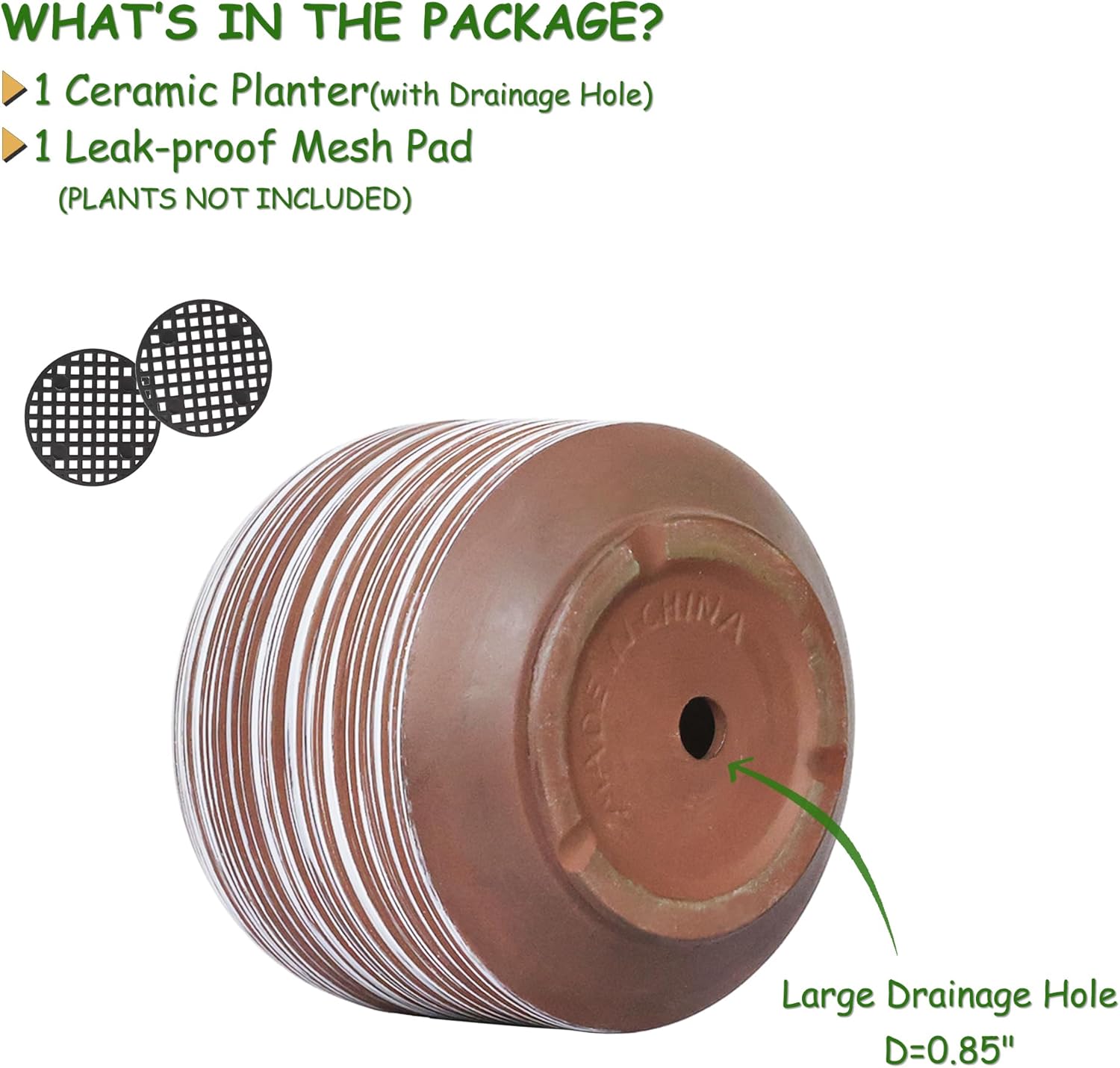 - 【Fits Medium to Large Houseplants】:10 inch diameter accommodates various plants such as fiddle leaf figs, snake plants, peace lilies, or monstera. A great ceramic plant pot for large indoor plants or balcony garden pots.