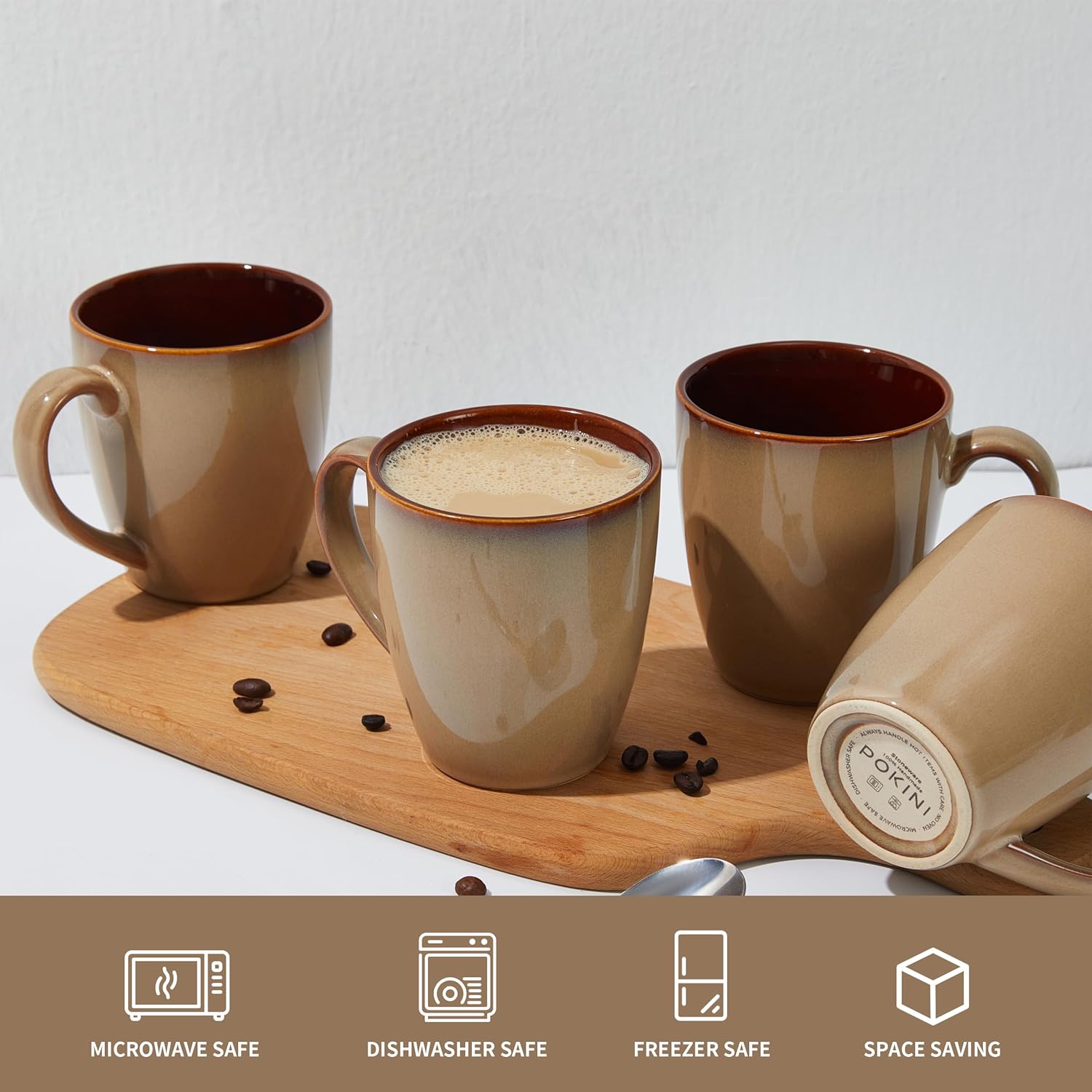 Coffee Mug 16 oz, Ceramic Coffee Mugs Set of 4, Reactive Glaze Mug for Latte/Tea/Cappuccino, Large Stackable Mug Set for Men, Women, Dad, Mom, Dishwasher & Microwave Safe, Brown Yellow