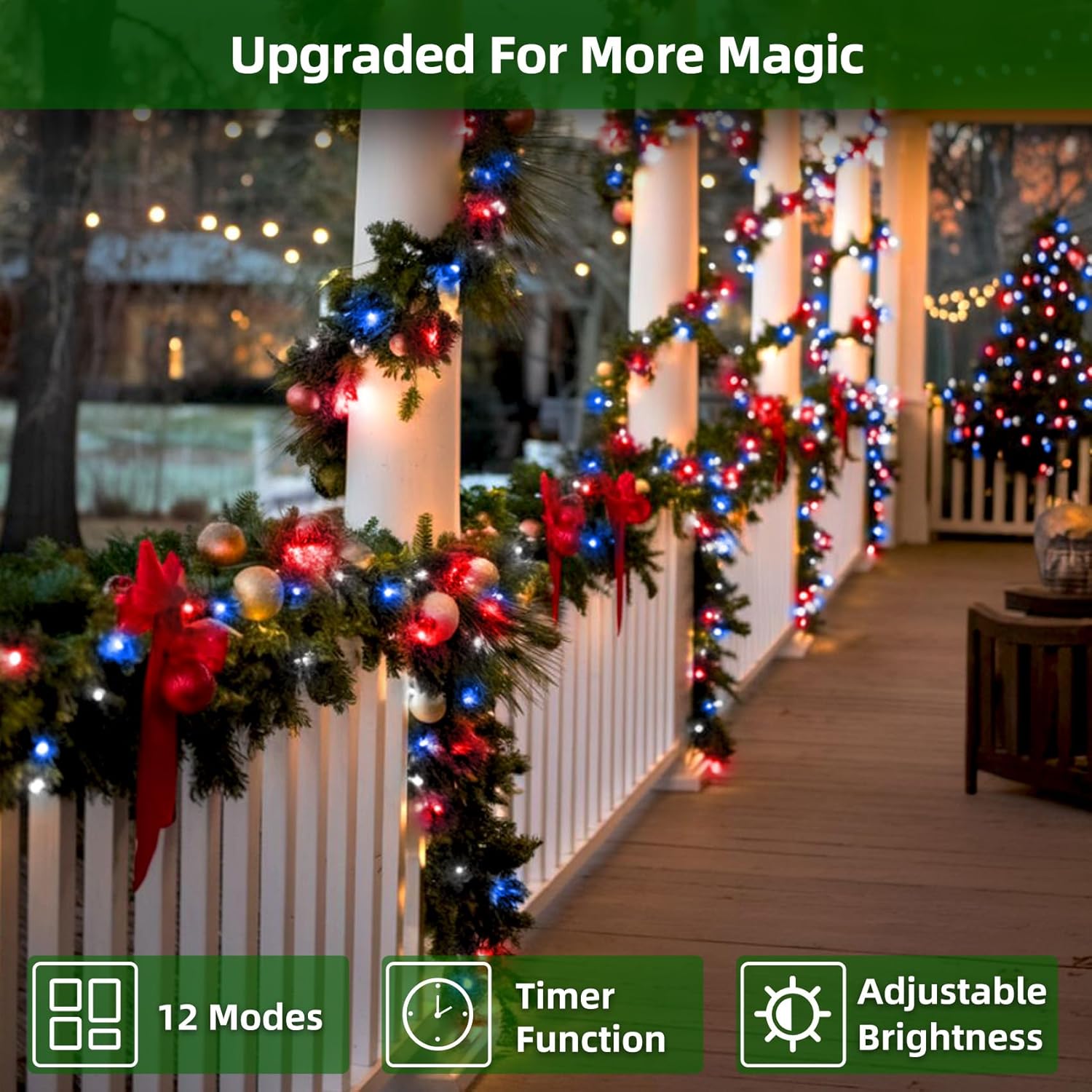 - Perfect for Large Homes: Tired of connecting multiple strands? This 470ft 1500 LED Red, Blue and Cool White outdoor Christmas string lights on dark green wire is long enough to wrap your garage, windows, roofline, porches, and even 15–20ft Christmas trees. One seamless strand delivers a bold, dynamic glow, blending festive warmth with cool brilliance to make your home unforgettable this holiday season.
